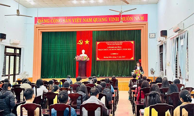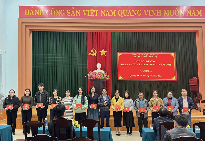 Vừa qua, Trung tâm Chính trị xã Quảng Điền tổ chức Lễ bế mạc Lớp Bồi dưỡng nhận thức về Đảng đợt I, năm 2025 cho các học viên là quần chúng ưu tú của các chi, đảng bộ cơ sở trên địa bàn xã Quảng Điền, xã Đan Điền và phường Phong Quảng.