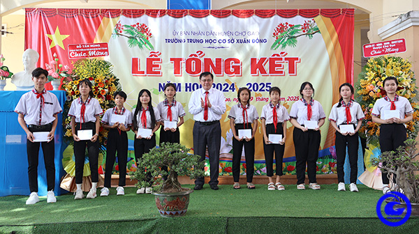 Dịp này, ông Đỗ Tấn Hùng, Trưởng Ban Tuyên giáo và Dân vận Tỉnh ủy đã trao 40 suất học bổng cho học sinh có thành tích tốt trong học tập, mỗi suất trị giá 01 triệu đồng; Ủy ban Mặt trận Tổ quốc huyện trao tặng 07 suất học bổng, mỗi suất 01 triệu đồng cho học sinh vượt khó học tốt.