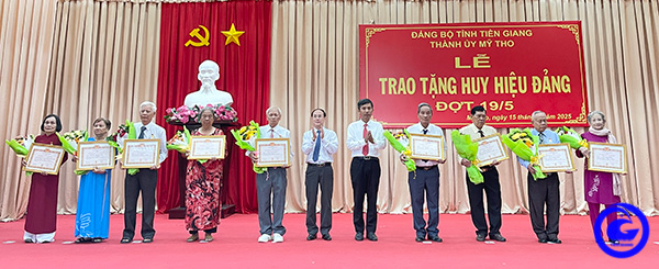 Đảng bộ thành phố Mỹ Tho tổ chức Lễ trao tặng Huy hiệu Đảng đợt 19/5/2025