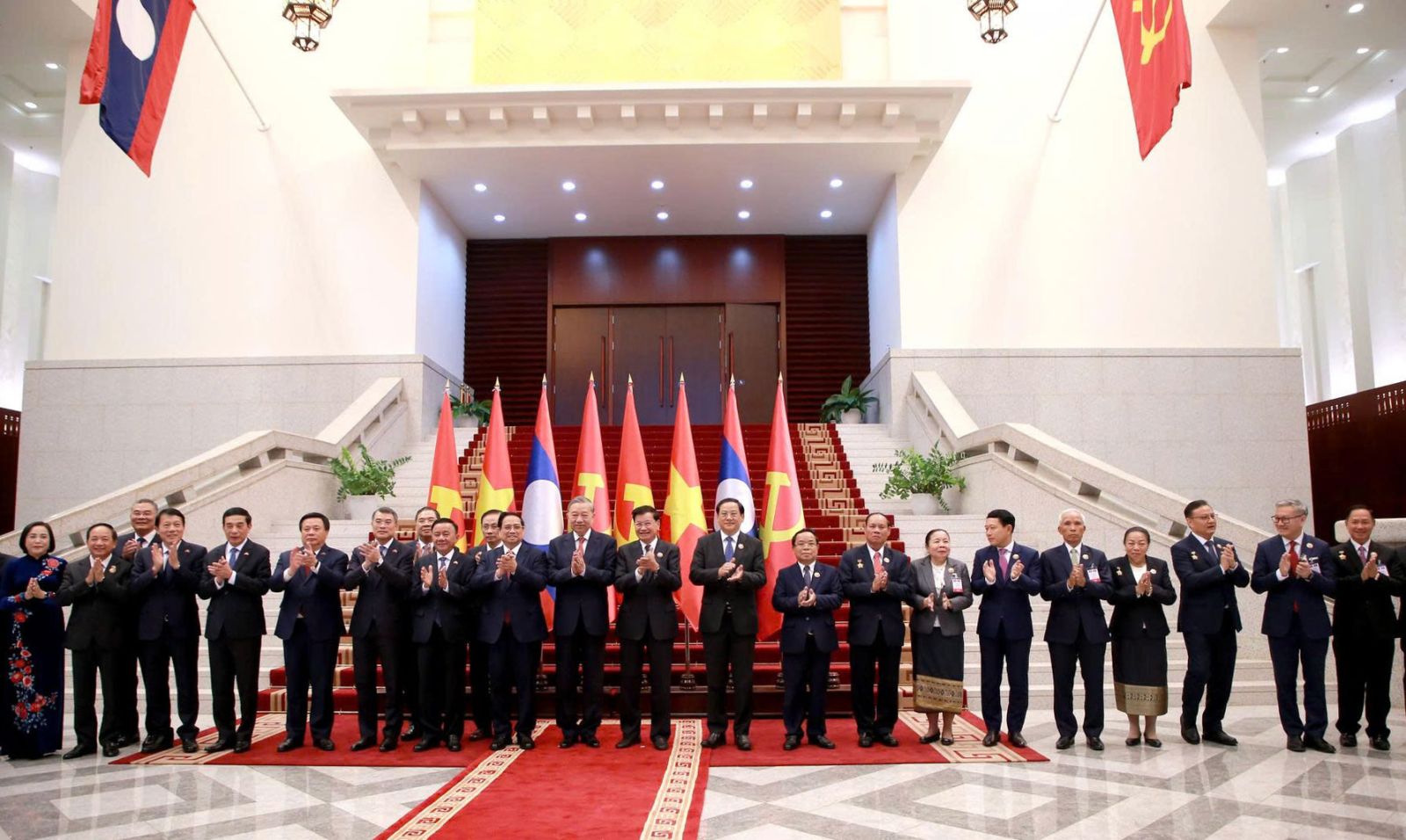 Tổng Bí thư Tô Lâm và Tổng Bí thư, Chủ tịch nước Lào Thongloun Sisoulith cùng các đại biểu dự Cuộc gặp cấp cao giữa Đảng Cộng sản Việt Nam và Đảng Nhân dân Cách mạng Lào.