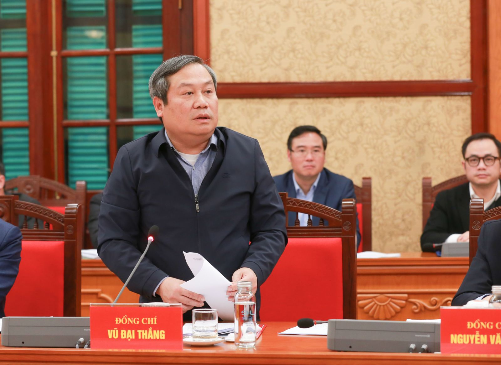 Đồng chí Vũ Đại Thắng, Ủy viên Trung ương Đảng, Phó Bí thư Thành ủy, Chủ tịch UBND TP Hà Nội phát biểu tại cuộc làm việc.