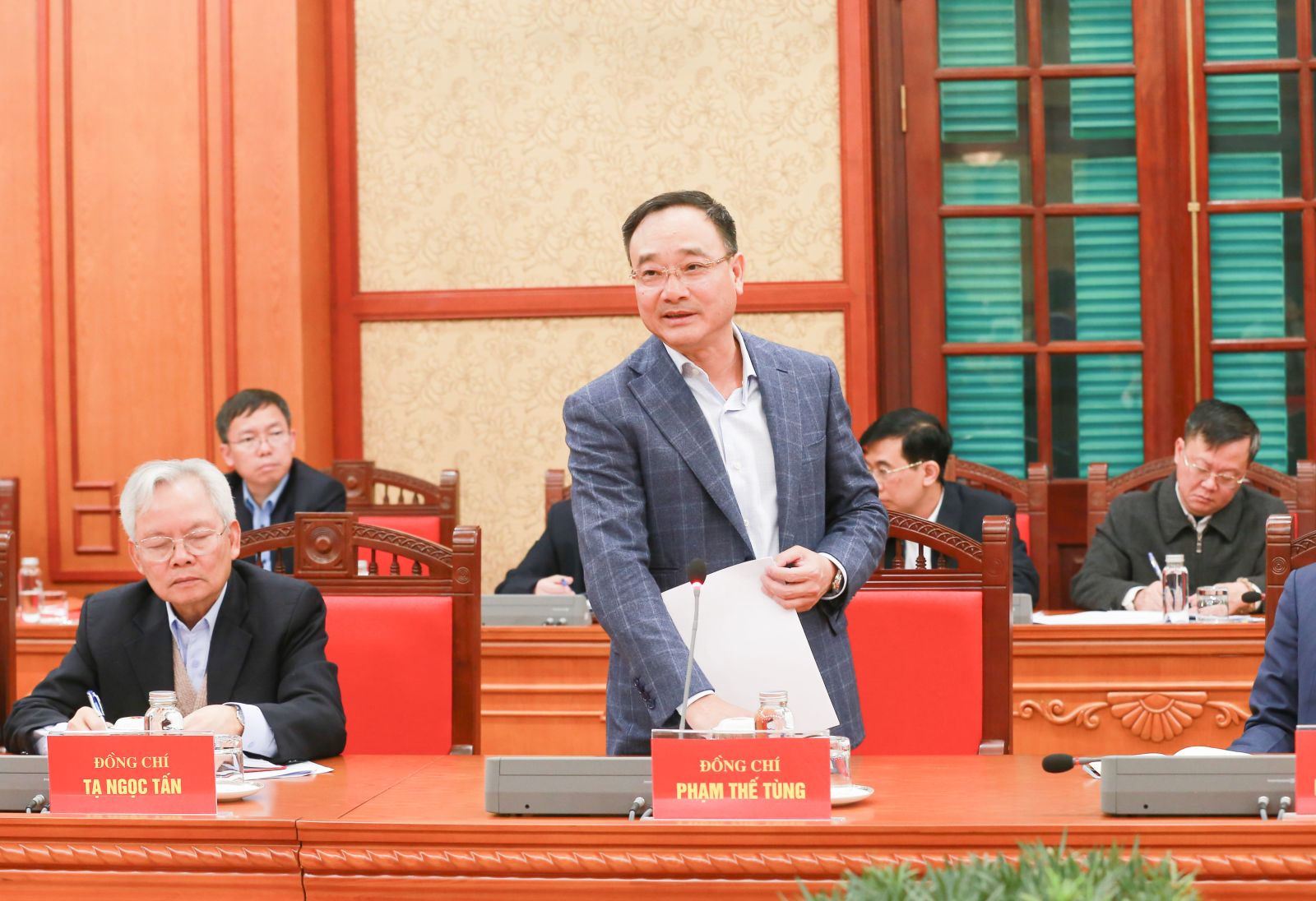 Đồng chí Phạm Gia Túc, Ủy viên Trung ương Đảng, Chánh Văn phòng Trung ương Đảng phát biểu tại cuộc làm việc.