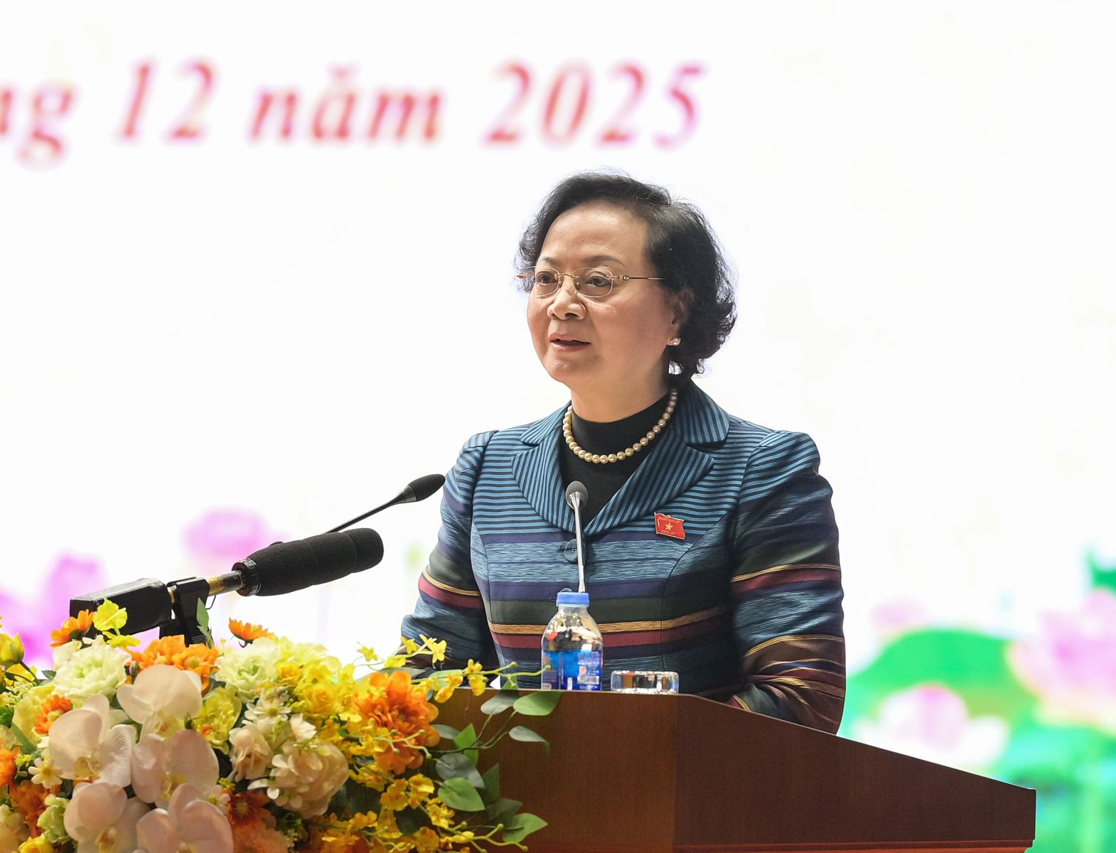Đồng chí Trần Cẩm Tú, Ủy viên Bộ Chính trị, Thường trực Ban Bí thư phát biểu chỉ đạo và thông tin về một số định hướng phát triển đất nước của Trung ương; công tác chuẩn bị Đại hội XIV của Đảng; tiếp thu, chỉ đạo về các kiến nghị của cử tri.