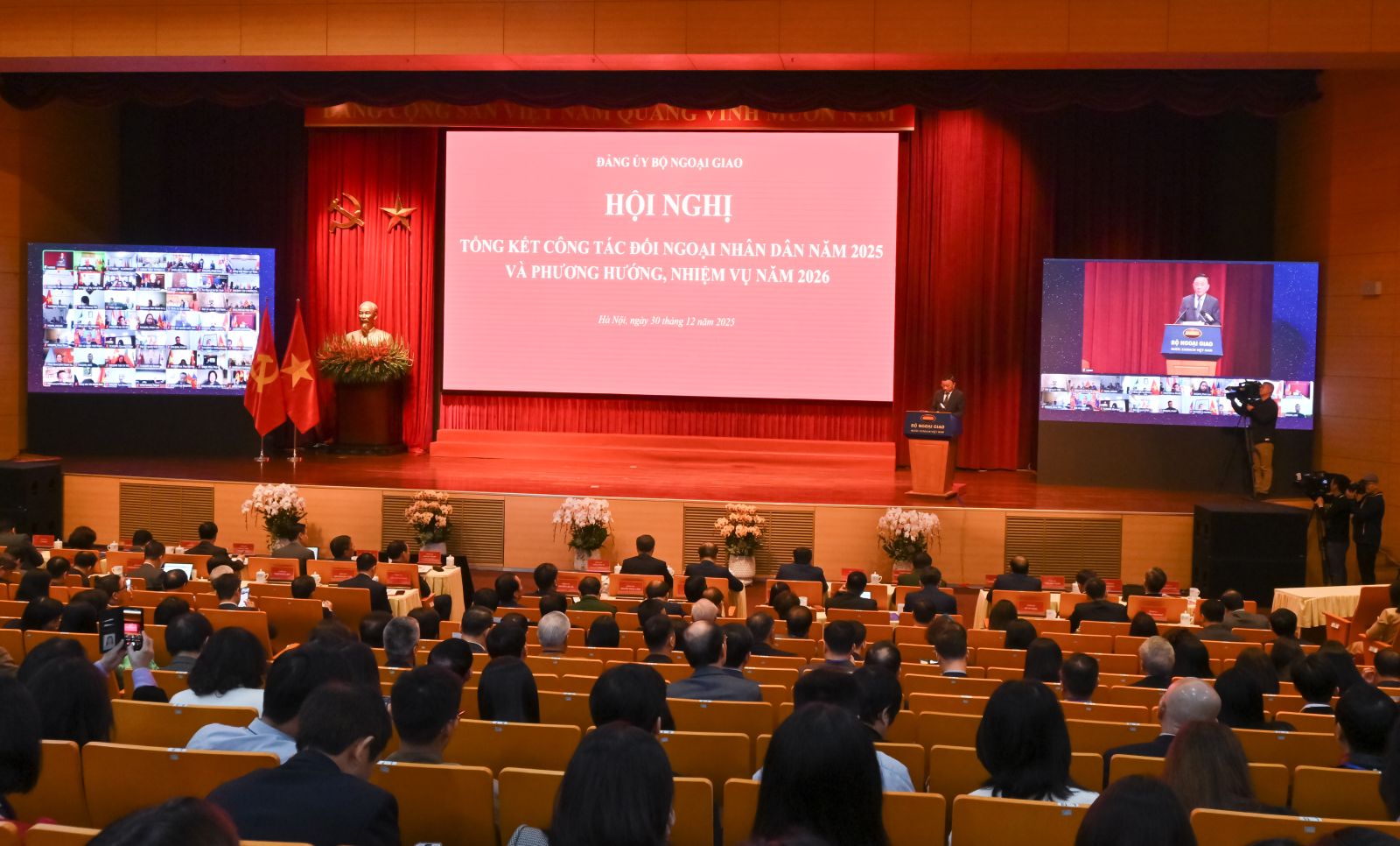 (ĐCSVN) - Sáng 30/12, Đảng ủy Bộ Ngoại giao tổ chức Hội nghị tổng kết công tác Đối ngoại nhân dân năm 2025 và phương hướng, nhiệm vụ năm 2026. Đồng chí Trần Cẩm Tú, Ủy viên Bộ Chính trị, Thường trực Ban Bí thư dự và chỉ đạo Hội nghị.