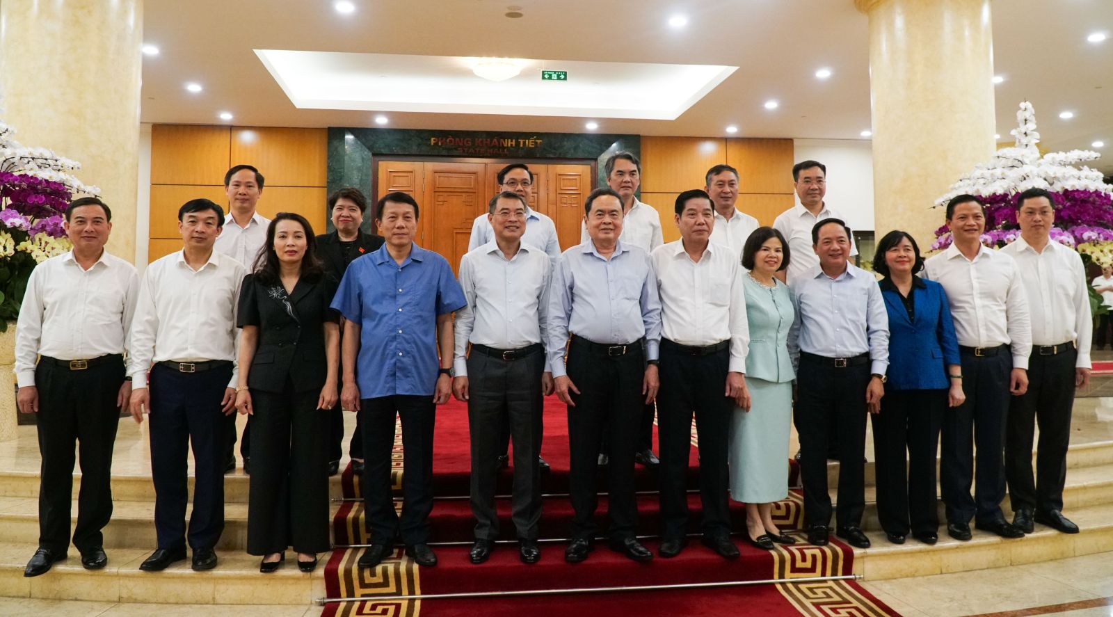 Đồng chí Trần Thanh Mẫn và các đồng chí Ủy viên Bộ Chính trị, Bí thư Trung ương Đảng chụp ảnh lưu niệm cùng Ban Thường vụ Tỉnh ủy Bắc Ninh.