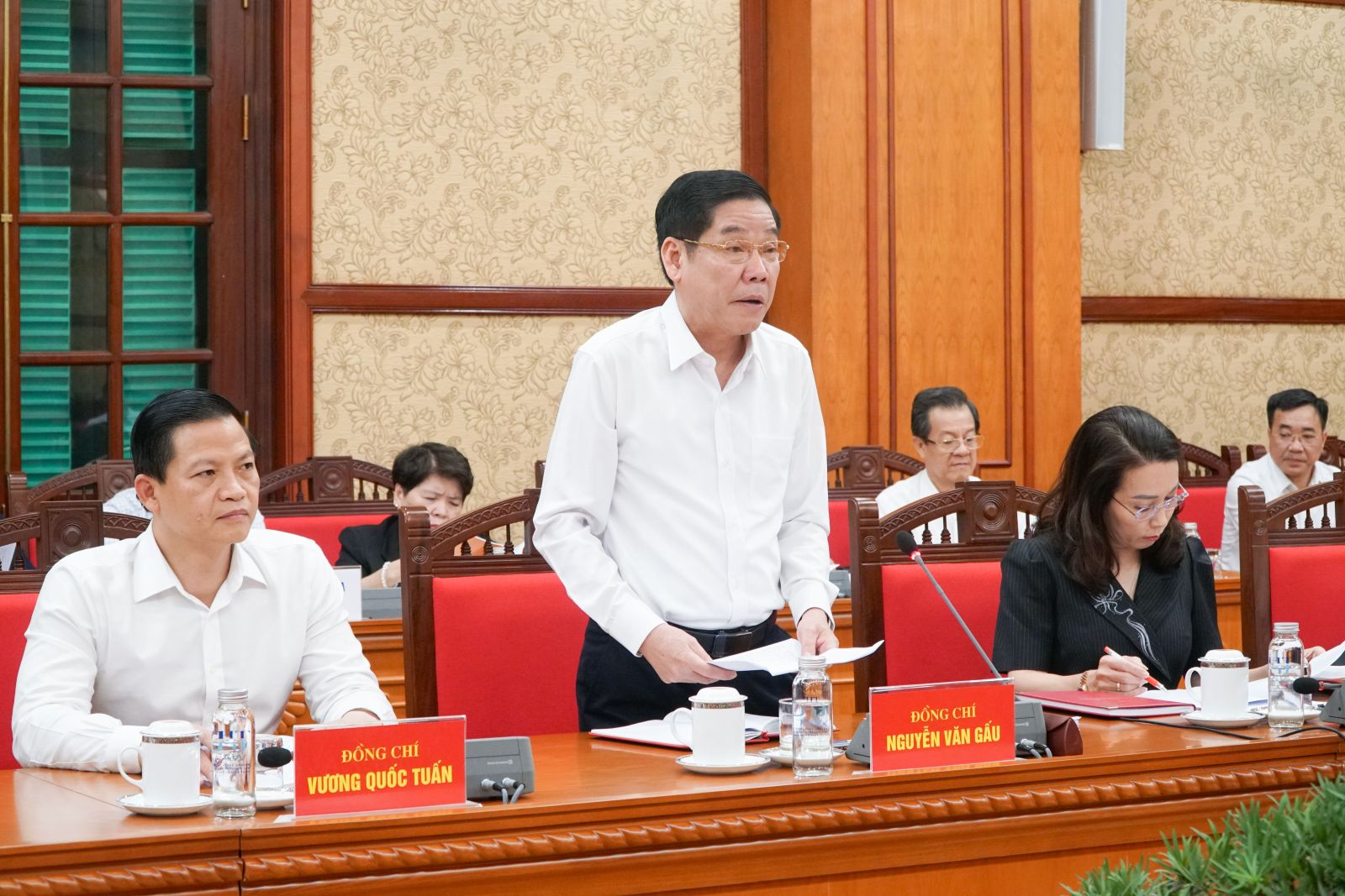 Đồng chí Nguyễn Văn Gấu, Ủy viên Trung ương Đảng, Bí thư Tỉnh ủy Bắc Ninh trình bày báo cáo tại buổi làm việc.