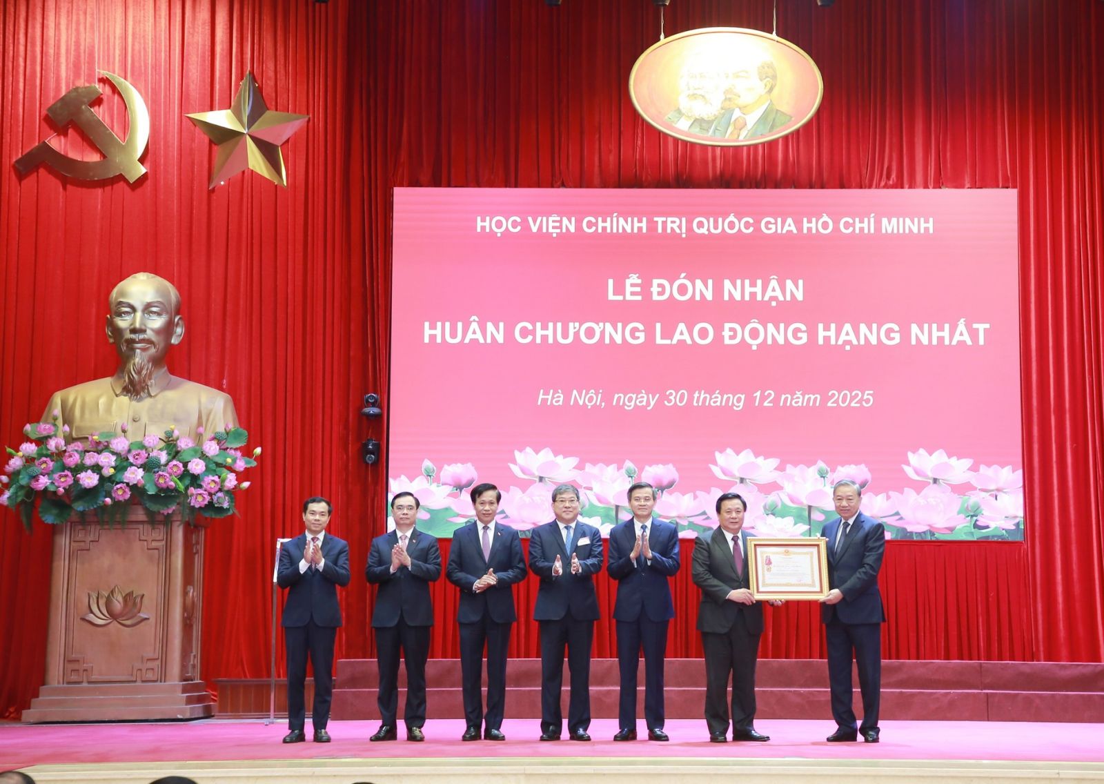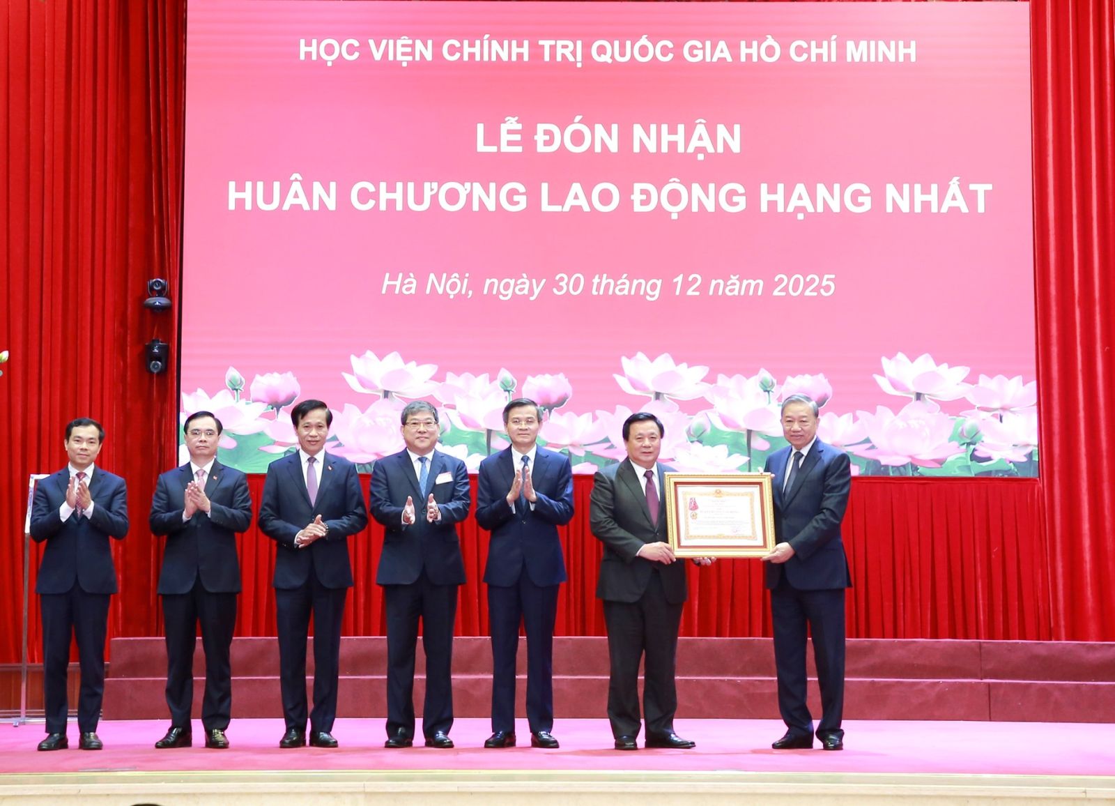 Tổng Bí thư Tô Lâm trao Huân chương Lao động hạng Nhất tặng Học viện Chính trị quốc gia Hồ Chí Minh.