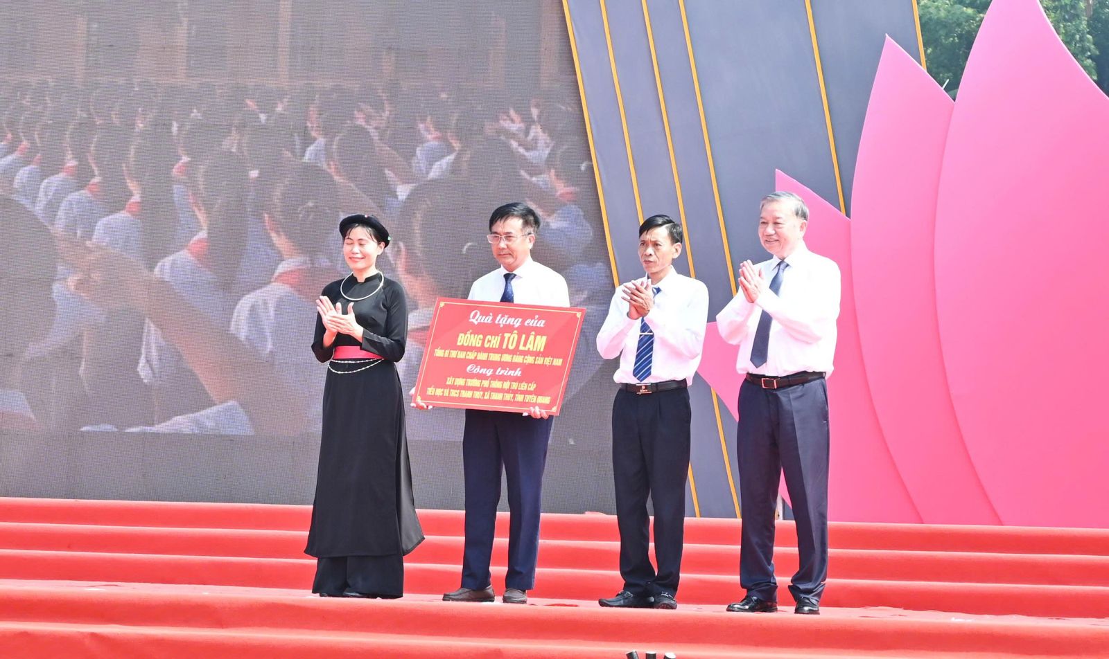 Tổng Bí thư trao tượng trưng kinh phí xây dựng trường phổ thông nội trú liên cấp tiểu học và THCS xã Thanh Thủy.