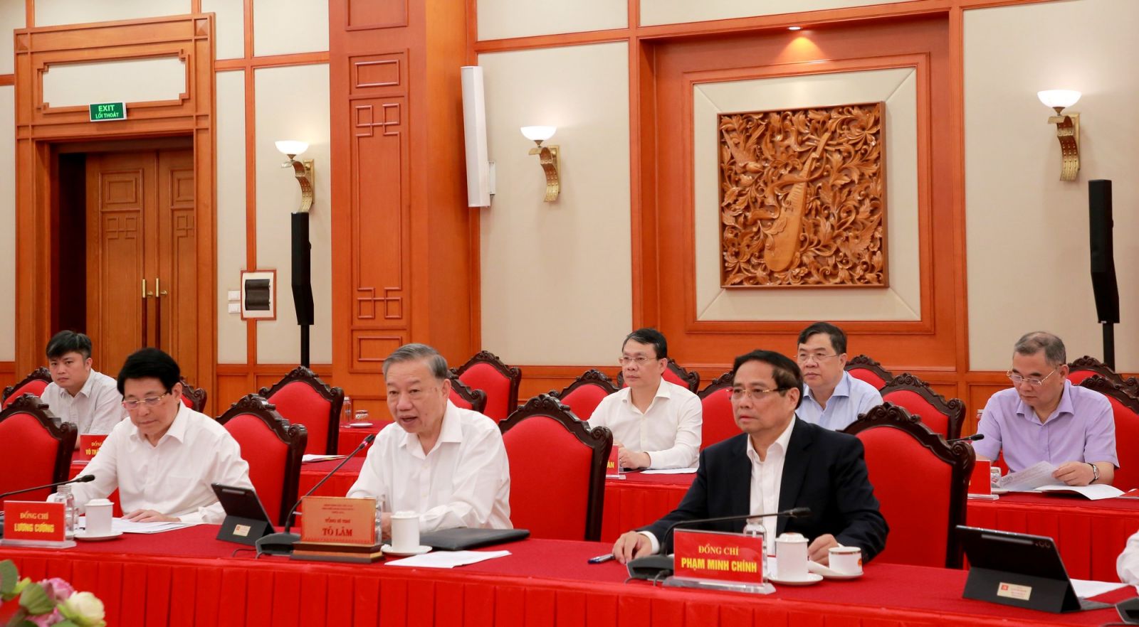 Tổng Bí thư Tô Lâm phát biểu chỉ đạo tại cuộc làm việc với Ban Thường vụ Đảng ủy Quốc hội.