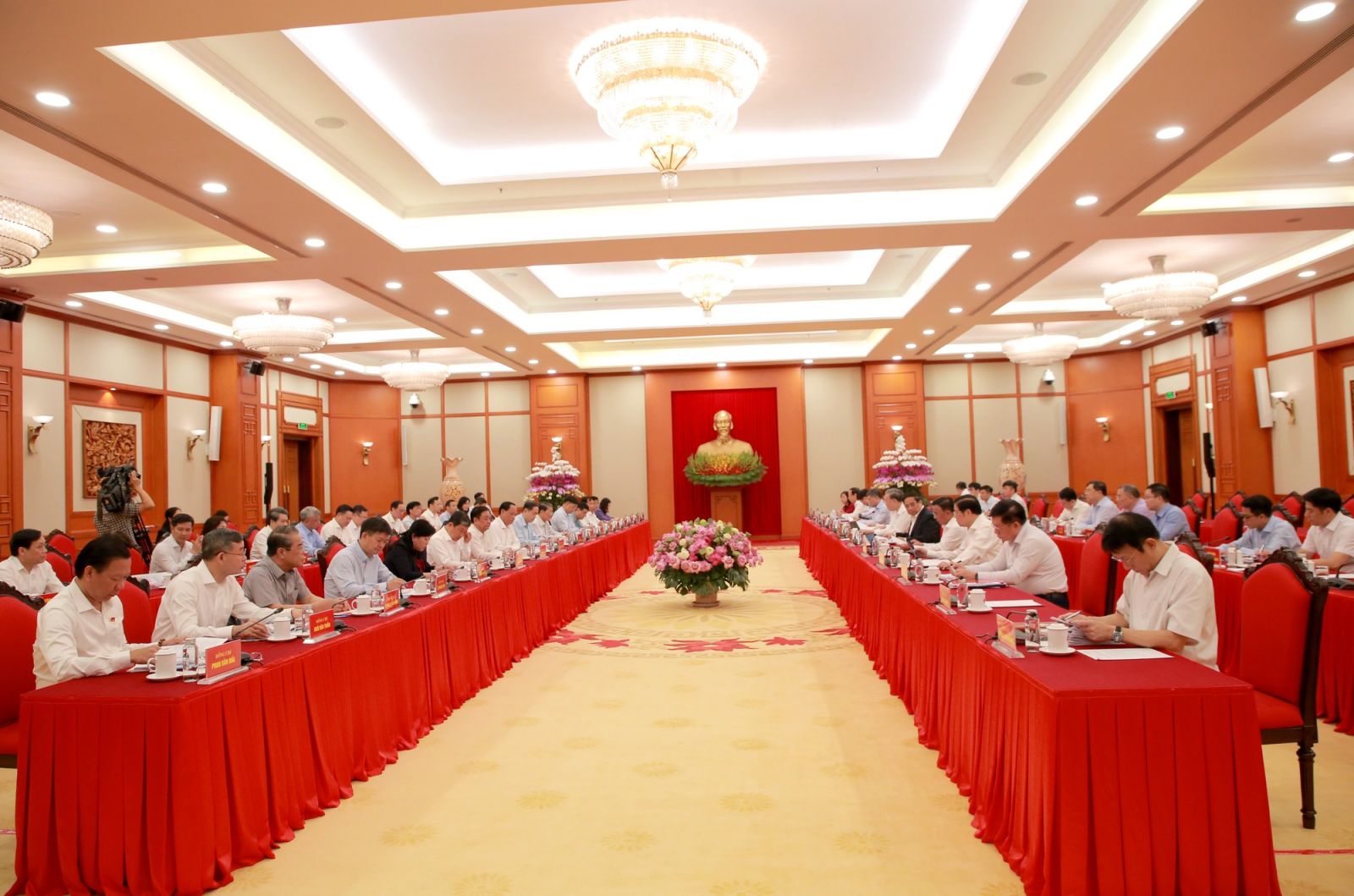 Các đồng chí Ủy viên Bộ Chính trị tại cuộc làm việc.