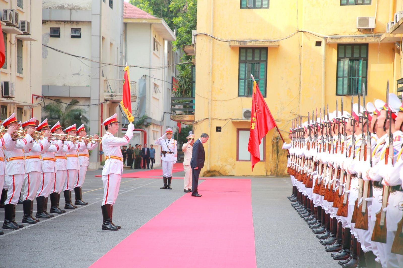 Tổng Bí thư Tô Lâm chào cờ và duyệt Đội Danh dự Cục An ninh chính trị nội bộ.
