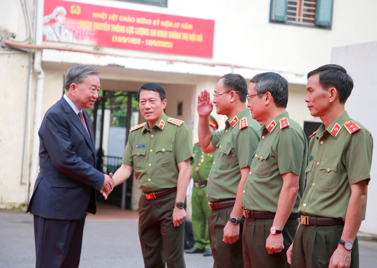 Ảnh: Tổng Bí thư Tô Lâm thăm và gặp mặt cán bộ chiến sỹ Cục An ninh chính trị nội bộ