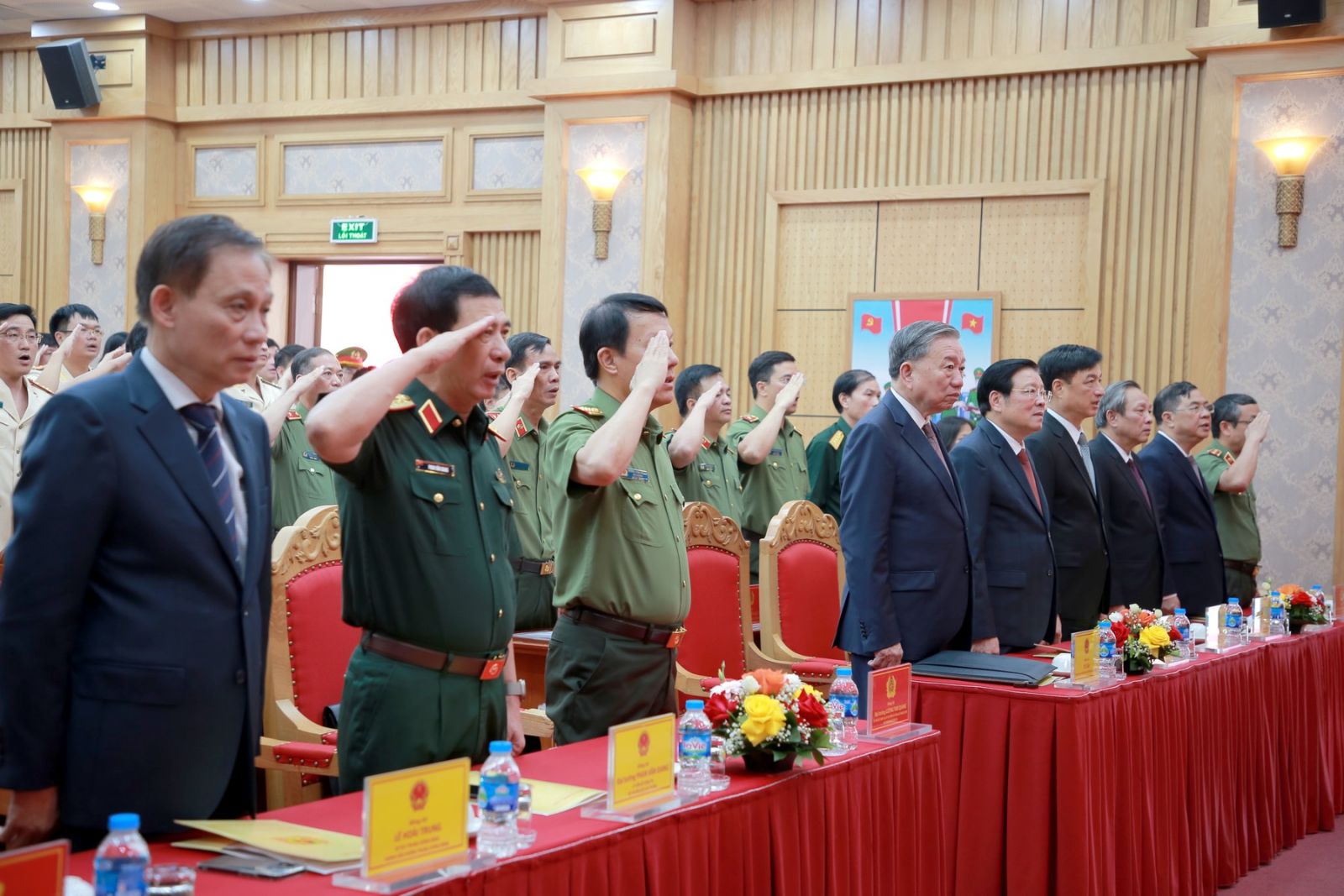 Lãnh đạo Bộ Công an đón Tổng Bí thư Tô Lâm tại buổi gặp mặt kỷ niệm.