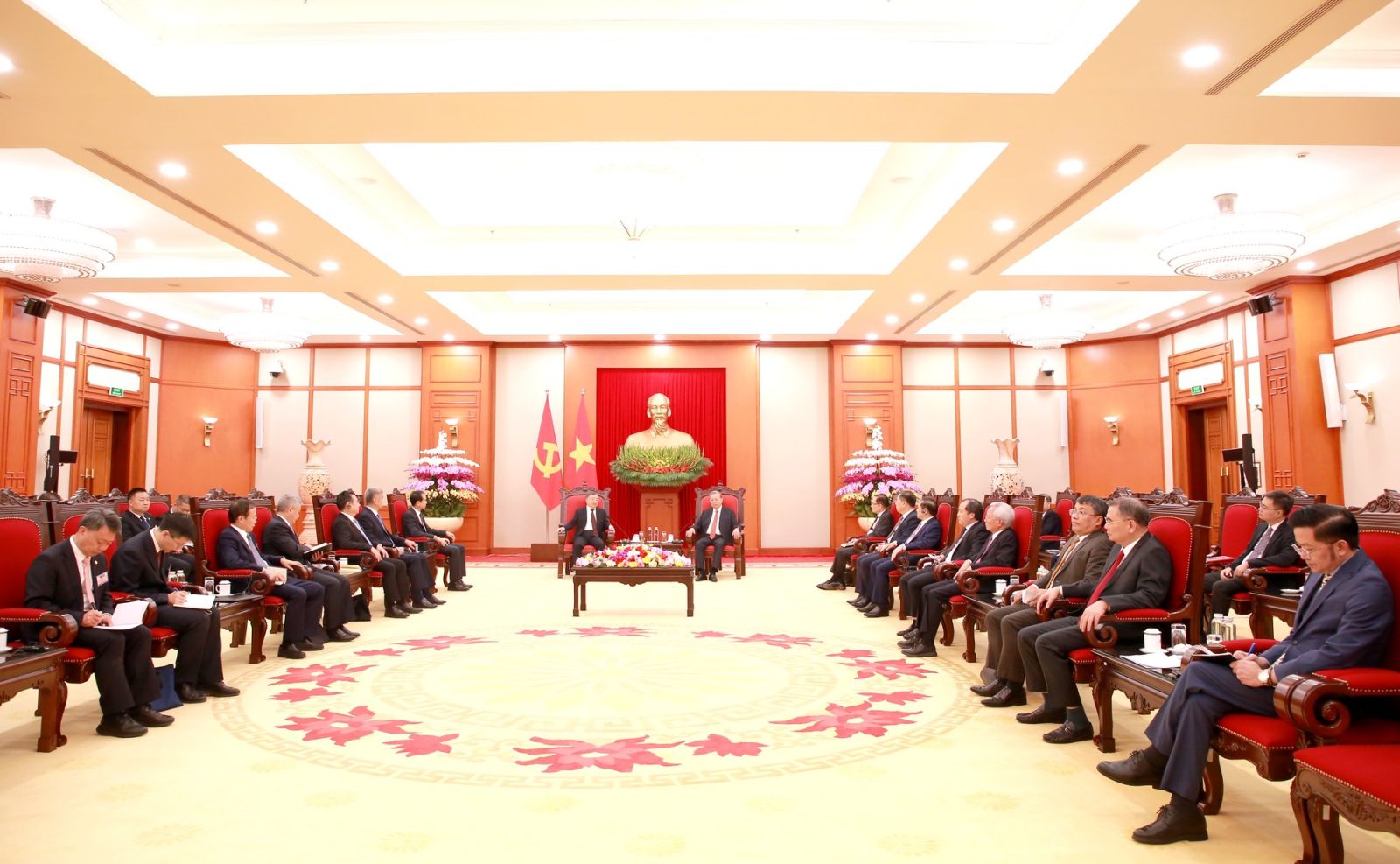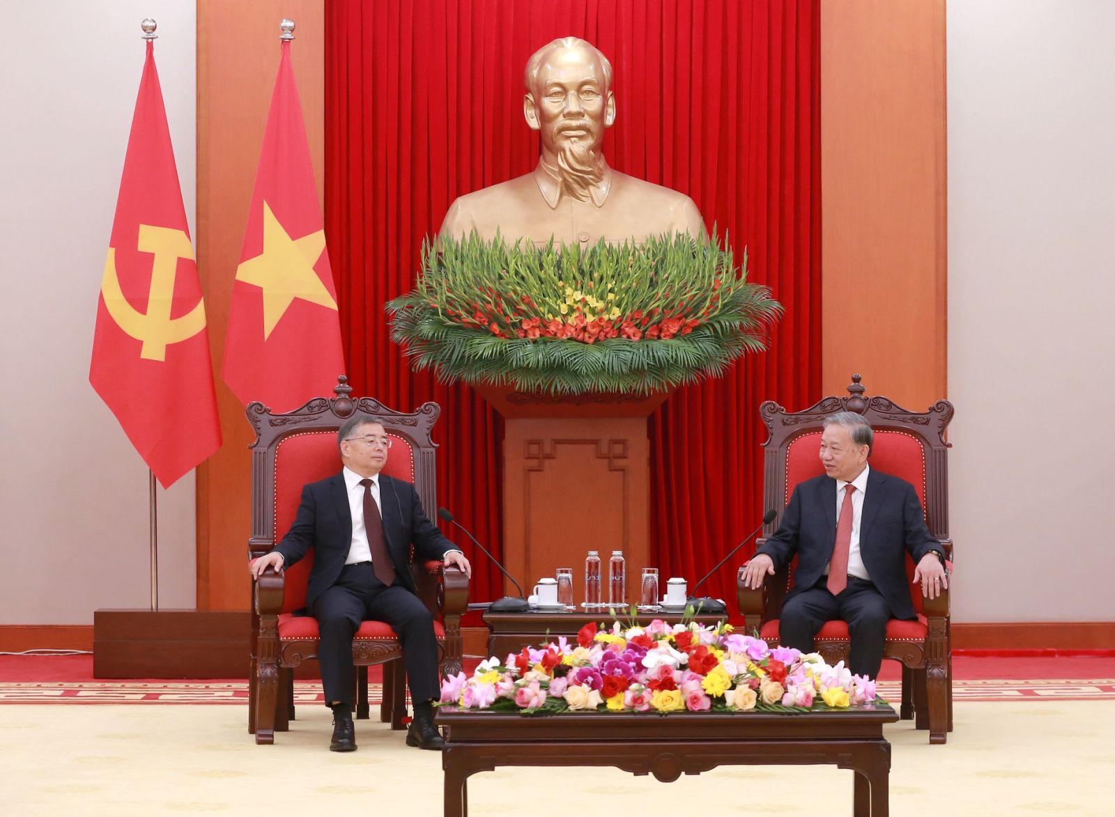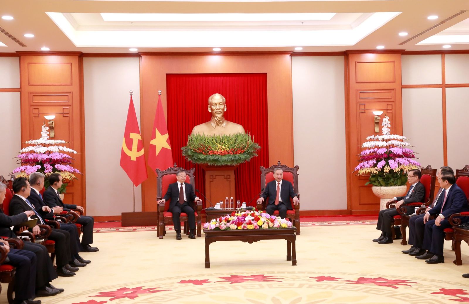 Tổng Bí thư Tô Lâm vui mừng chào đón đồng chí Lý Thư Lỗi, Ủy viên Bộ Chính trị, Bí thư Ban Bí thư, Trưởng Ban Tuyên truyền Trung ương, Đảng Cộng sản Trung Quốc và Đoàn công tác tới thăm và làm việc tại Việt Nam.