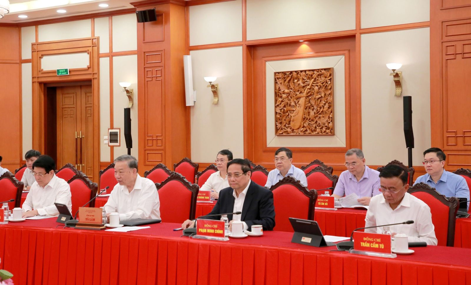 (ĐCSVN) - Sáng ngày 11/9/2025, tại Trụ sở Trung ương Đảng, dưới sự chủ trì của đồng chí Tổng Bí thư Tô Lâm, Bộ Chính trị đã làm việc với Ban Thường vụ Đảng uỷ Quốc hội để cho ý kiến vào dự thảo các văn kiện, phương án nhân sự và công tác chuẩn bị Đại hội đại biểu Đảng bộ Quốc hội lần thứ I, nhiệm kỳ 2025 - 2030.