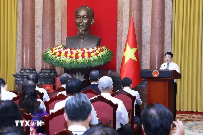 Chủ tịch nước Lương Cường phát biểu. (Ảnh: Lâm Khánh/ TTXVN)