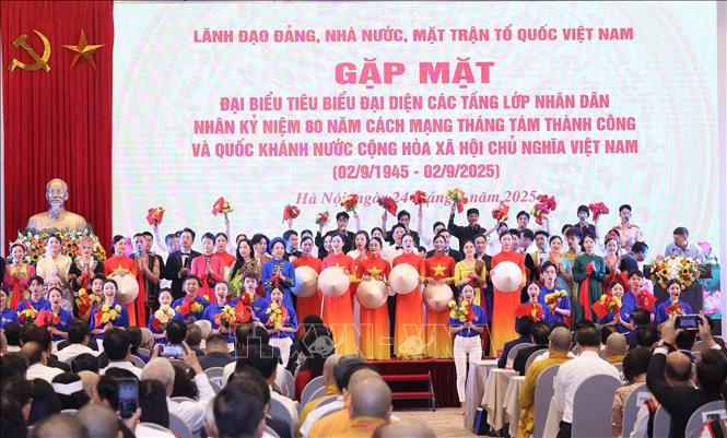 Sáng 24/8/2025, tại Trung tâm Hội nghị Quốc tế (Hà Nội), Uỷ ban Trung ương Mặt trận Tổ quốc Việt Nam tổ chức Hội nghị gặp mặt của lãnh đạo Đảng, Nhà nước với đại biểu tiêu biểu đại diện các tầng lớp nhân dân tham dự Lễ kỷ niệm 80 năm Cách mạng tháng Tám thành công và Quốc khánh nước Cộng hoà Xã hội chủ nghĩa Việt Nam (2/9/1945 - 2/9/2025).