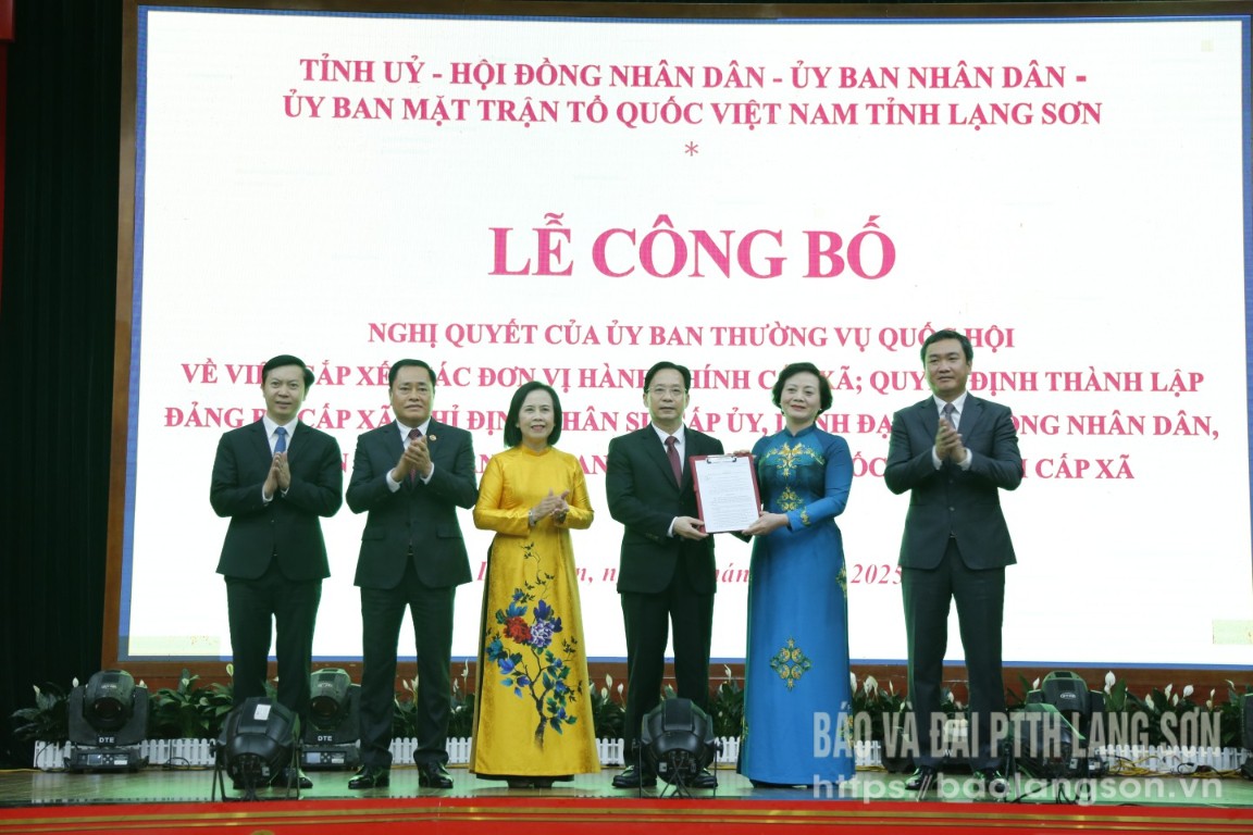 Tại hội nghị, đồng chí Chủ tịch UBND tỉnh đã công bố Nghị quyết số 1672 ngày 16/6/2025 của Ủy ban Thường vụ Quốc hội về việc sắp xếp các đơn vị hành chính cấp xã tỉnh Lạng Sơn năm 2025. Theo đó, toàn tỉnh thực hiện sắp xếp 194 đơn vị hành chính cấp xã thành 65 đơn vị hành chính cấp cơ sở.