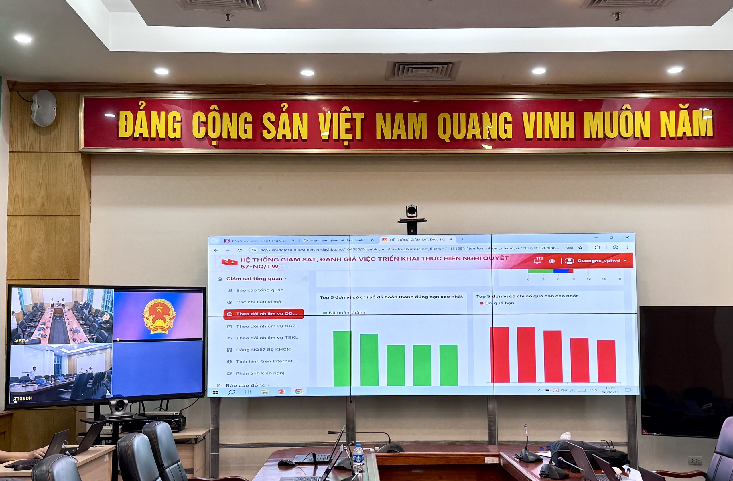 Việc cập nhật dữ liệu hng ngày lên Hệ thống giám sát, đánh giá việc triển khai thực hiện Nghị quyết 57-NQ/TW, kết hợp với cơ chế điều hành tập trung, liên thông là giải pháp then chốt để đảm bảo tiến độ triển khai Kế hoạch số 02-KH/BCĐTW.