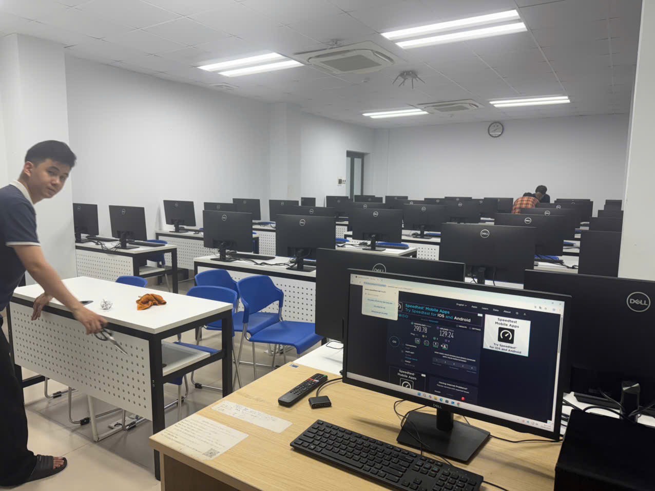 Lắp đặt trang thiết bị cho các Nhóm công tác tại điểm cầu Đại học Quốc gia Hà Nội.