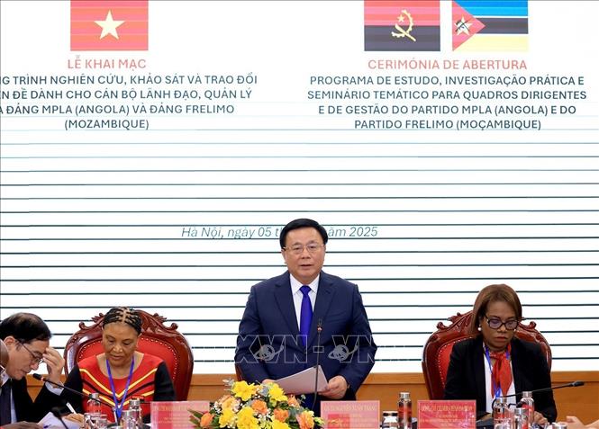 Sáng 5/9, tại Hà Nội, Học viện Chính trị quốc gia Hồ Chí Minh tổ chức khai mạc Chương trình nghiên cứu, khảo sát và trao đổi chuyên đề dành cho cán bộ lãnh đạo, quản lý của Đảng Phong trào Nhân dân Giải phóng Angola (MPLA, Angola) và Đảng Mặt trận giải phóng Mozambique (FRELIMO, Mozambique) năm 2025.