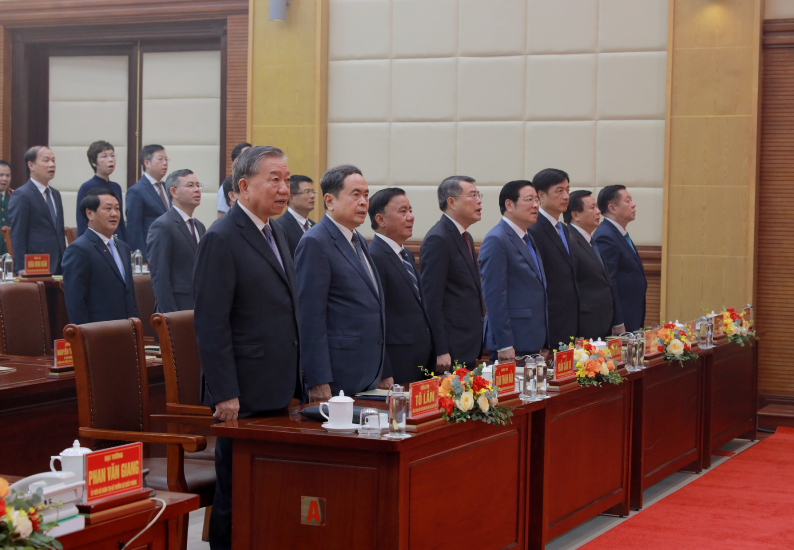 Cùng tham dự buổi Lễ có các đồng chí Ủy viên Bộ Chính trị: Trần Thanh Mẫn, Chủ tịch Quốc hội; Trần Cẩm Tú, Thường trực Ban Bí thư; Lê Minh Hưng, Bí thư Trung ương Đảng, Trưởng Ban Tổ chức Trung ương; Phan Đình Trạc, Bí thư Trung ương Đảng, Trưởng Ban Nội chính Trung ương; Nguyễn Duy Ngọc, Bí thư Trung ương Đảng, Chủ nhiệm Ủy ban Kiểm tra Trung ương; Nguyễn Trọng Nghĩa, Bí thư Trung ương Đảng, Trưởng Ban Tuyên giáo và Dân vận Trung ương; Nguyễn Xuân Thắng, Giám đốc Học viện Chính trị Quốc gia Hồ Chí Minh, Chủ tịch Hội đồng lý luận Trung ương; Nguyễn Hòa Bình, Phó Thủ tướng Thường trực Chính phủ; Phan Văn Giang, Phó Bí thư Quân ủy Trung ương, Bộ Trưởng Bộ Quốc phòng; Lương Tam Quang, Bộ trưởng Bộ Công an; Nguyễn Văn Nên, Thường trực Tiểu ban Văn kiện Đại hội XIV của Đảng. Đồng chí Lê Hoài Trung, Bí thư Trung ương Đảng, Quyền Bộ trưởng Bộ Ngoại giao; Đại tướng Trịnh Văn Quyết, Bí thư Trung ương Đảng, Ủy viên Thường vụ Quân ủy Trung ương, Chủ nhiệm Tổng cục Chính trị Quân đội nhân dân Việt Nam.