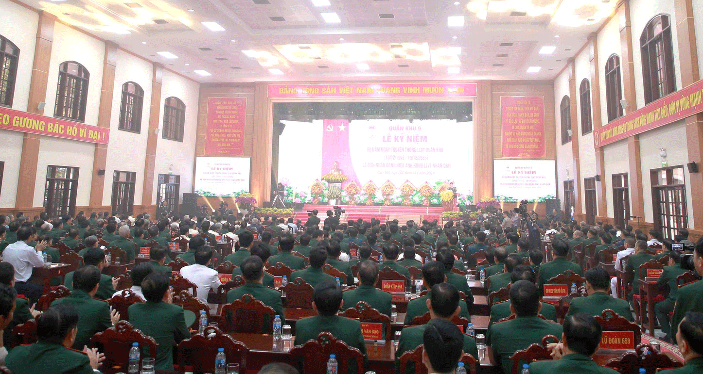 (ĐCSVN) – Sáng 8/12, tại thành phố Cần Thơ, Đảng ủy, Bộ Tư lệnh Quân khu 9 long trọng tổ chức lễ kỷ niệm 80 năm ngày truyền thống Lực lượng vũ trang (LLVT) Quân khu 9 (10/12/1945 - 10/12/2025) và đón nhận danh hiệu Đơn vị Anh hùng Lực lượng vũ trang Nhân dân. Tổng Bí thư Tô Lâm, Bí thư Quân ủy Trung ương dự và phát biểu chỉ đạo.