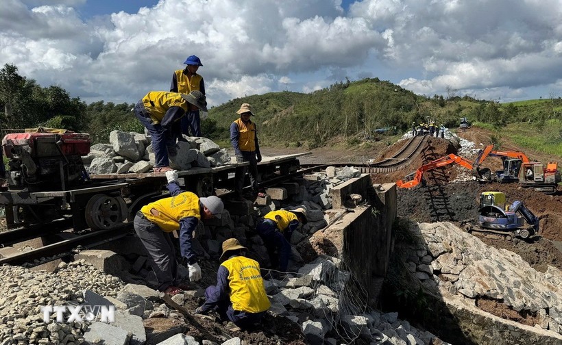 Các đơn vị cũng tiến hành đặt các đốt cống thoát nước.Về thông tin tín hiệu đã khôi phục tạm thông tin liên lạc từ ga Tuy Hòa đến ga Diêu Trì phục vụ việc chạy tàu; đồng thời, thực hiện cảnh giới đường ngang cảnh báo tự động phục vụ chạy tàu chở đá ứng cứu khắc phục cầu tạm tại Km 1136+800./.