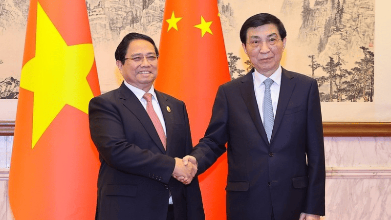 Thủ tướng Chính phủ Phạm Minh Chính chuyển lời thăm hỏi của Tổng Bí thư Tô Lâm, Chủ tịch nước Lương Cường, Chủ tịch Quốc hội Trần Thanh Mẫn, Chủ tịch Ủy ban Trung ương mặt trận tổ quốc Việt Nam Đỗ Văn Chiến tới đồng chí Vương Hộ Ninh và các đồng chí Lãnh đạo cấp cao Trung Quốc; khẳng định Việt Nam luôn coi trọng việc phát triển quan hệ láng giềng hữu nghị, đối tác hợp tác chiến lược toàn diện với Trung Quốc là yêu cầu khách quan, lựa chọn chiến lược, tự nhiên và ưu tiên hàng đầu trong chính sách đối ngoại của Việt Nam.