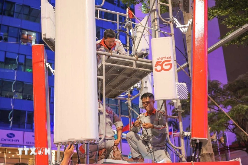 Công nhân Viettel. (Ảnh: Hoàng Hiếu/TTXVN)