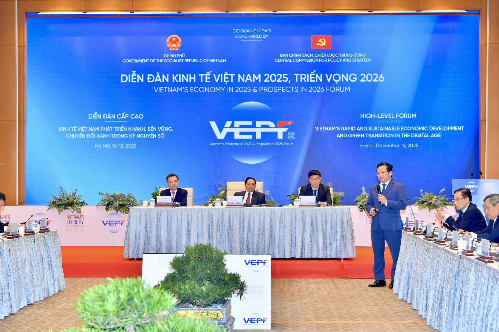 Phát biểu tại Diễn đàn, Thủ tướng Phạm Minh Chính nhấn mạnh đây là sự kiện có ý nghĩa quan trọng đánh giá tình hình, kết quả phát triển kinh tế của Việt Nam năm 2025 và định hướng, giải pháp thúc đẩy phát triển nhanh, bền vững dựa trên chiến lược "chuyển đổi kép: xanh hoá, số hoá" trong năm 2026 và những năm tiếp theo.