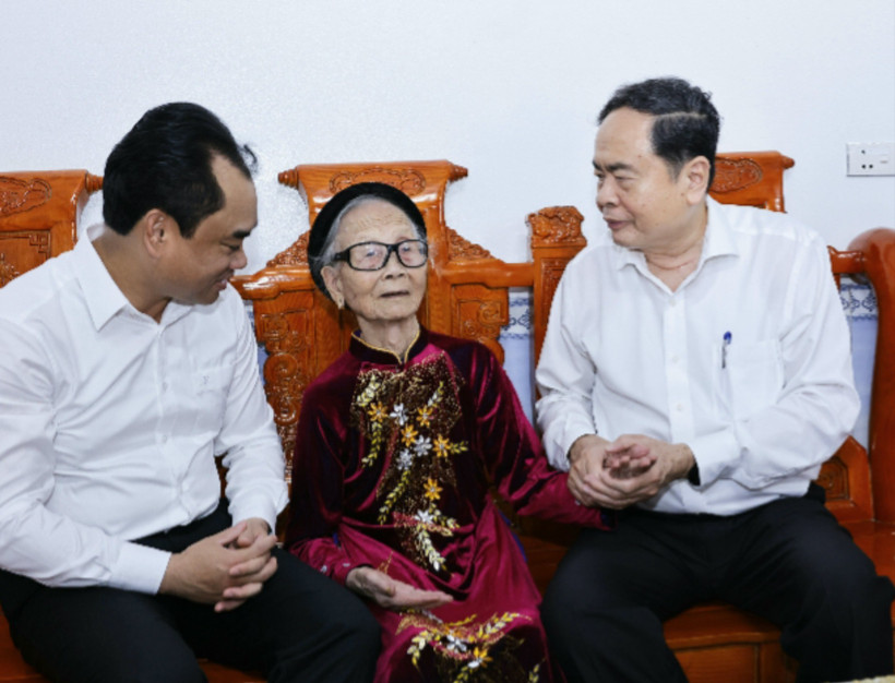 Chủ tịch Quốc hội đến thăm và tặng quà mẹ Việt Nam anh hùng Tạ Thị Trần có chồng là Tạ Văn Liên - là liệt sĩ chống Pháp và con là liệt sĩ Nguyễn Xuân Hướng hy sinh năm 1978 tại tỉnh Tây Ninh cũ.