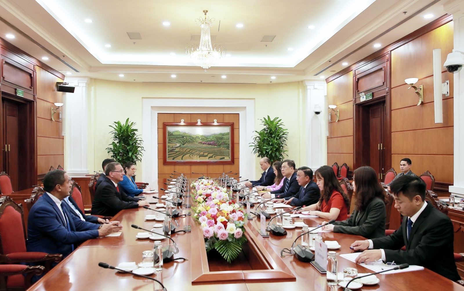 Thường trực Ban Bí thư Trần Cẩm Tú tiếp Phó Chủ tịch Đảng Xã hội Chủ nghĩa thống nhất Venezuela Jesús Faria