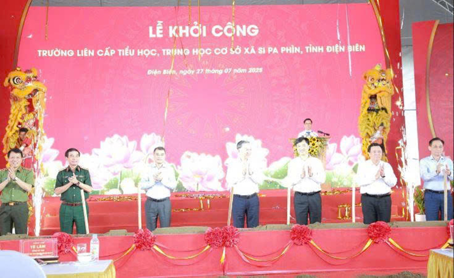 (ĐCSVN) - Sáng 27/7, nhân chuyến thăm và công tác tại tỉnh Điện Biên, Tổng Bí thư Tô Lâm và đoàn công tác Trung ương đã dự Lễ khởi công xây dựng Trường Liên cấp Tiểu học, THCS Si Pha Phìn. Đây là điểm trường biên giới đầu tiên được khởi công xây dựng sau Thông báo Kết luận số 81-TB/TW của Bộ Chính trị về chủ trương đầu tư xây dựng trường học cho các xã biên giới; là sự quan tâm đặc biệt và chính sách ưu tiên để các em học sinh và giáo viên tại các xã biên giới an tâm học tập và lưu trú.