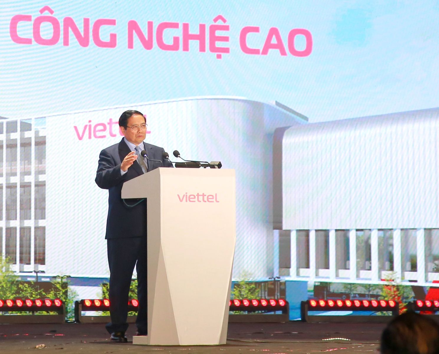Phát biểu tại Lễ khởi công, Thủ tướng Phạm Minh Chính nêu rõ, việc xây dựng Nhà máy chip bán dẫn không chỉ là một dự án đầu tư, mà là một dấu mốc chiến lược, thể hiện quyết tâm của Việt Nam tham gia sâu, tham gia thực chất vào chuỗi giá trị bán dẫn toàn cầu, để đạt được các mục tiêu của Chiến lược phát triển công nghiệp bán dẫn Việt Nam đến năm 2030 tầm nhìn 2050.