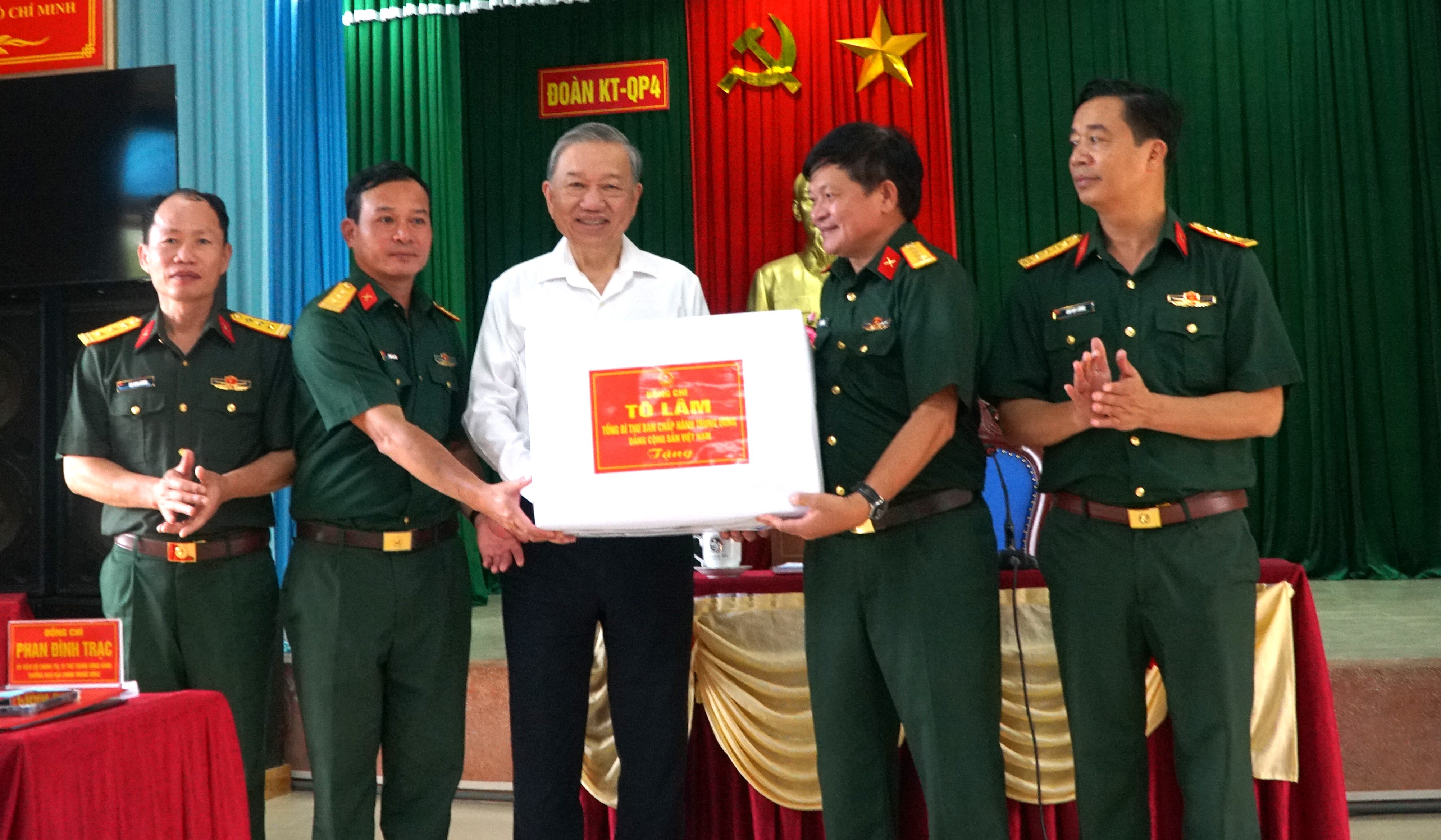 Tổng Bí thư Tô Lâm nhấn mạnh, mỗi cán bộ, chiến sĩ Đoàn KT-QP 4 cần tiếp tục giữ vững bản lĩnh chính trị, trung thành tuyệt đối với Đảng, là chỗ dựa vững chắc của chính quyền địa phương và nhân dân, góp phần xây dựng khu vực biên giới ngày càng phát triển, ổn định và vững mạnh về quốc phòng, an ninh./.