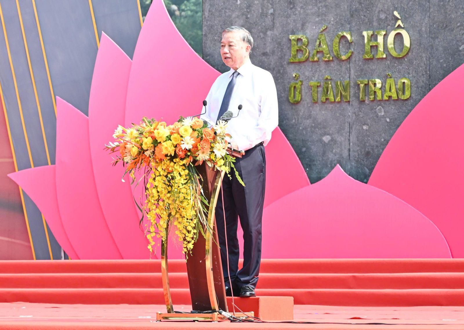 Phát biểu tại Ngày hội, Tổng Bí thư Tô Lâm bày tỏ rất vui mừng, xúc động về lại xã Tân Trào, tỉnh Tuyên Quang, vùng đất lịch sử thiêng liêng, nơi từng là Thủ đô kháng chiến, khởi nguồn của những quyết định trọng đại đưa đất nước đến độc lập, tự do để dự Lễ khánh thành “Tượng đài Bác Hồ ở Tân Trào” và Ngày hội toàn dân bảo vệ an ninh Tổ quốc.