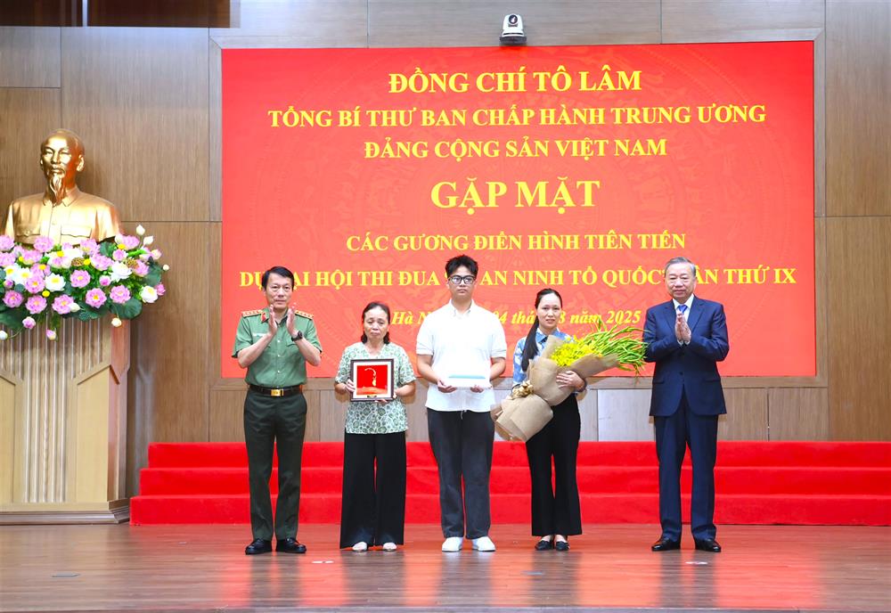 Tổng Bí thư Tô Lâm và Bộ trưởng Bộ Công an Lương Tam Quang cũng đã tặng quà các điển hình tiên tiến trong lực lượng Công an nhân dân và điển hình tiên tiến của lực lượng an ninh trật tự tại cơ sở./.