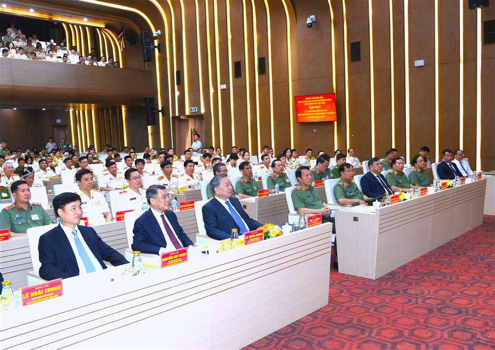 Phát biểu tại buổi gặp mặt, Tổng Bí thư Tô Lâm nhiệt liệt hoan nghênh, chúc mừng sự trưởng thành, phát triển của lực lượng CAND, của phong trào thi đua "Vì an ninh Tổ quốc" thời gian qua, gắn với sự phát triển của đất nước cũng như lực lượng CAND.