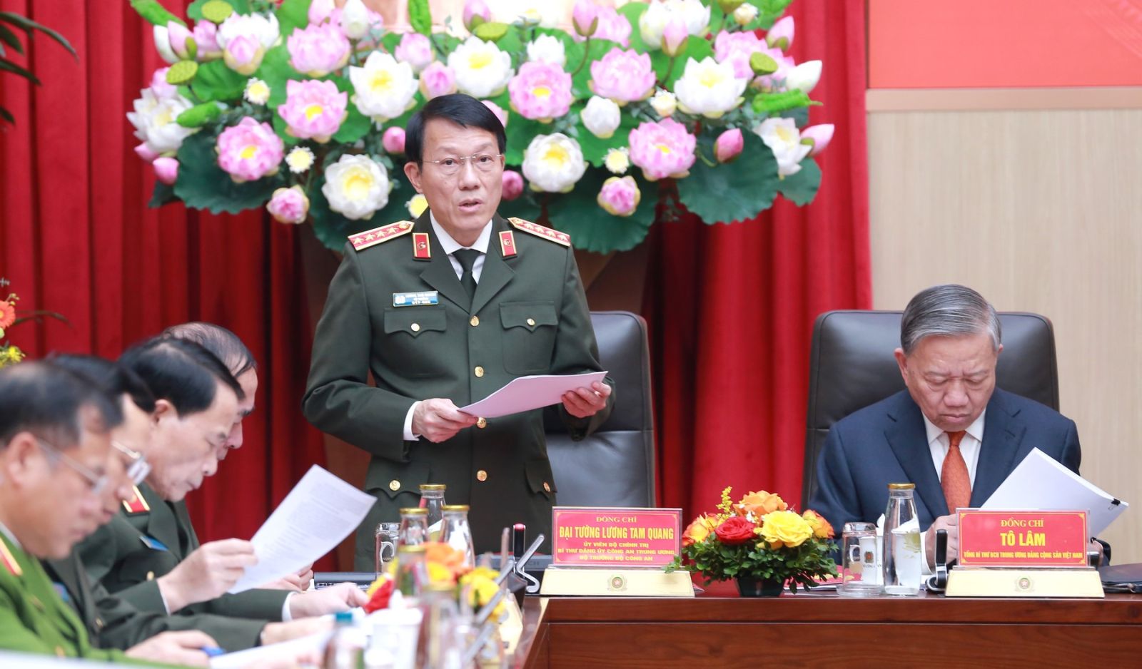 Thay mặt Đảng ủy Công an Trung ương, Đại tướng Lương Tam Quang, Ủy viên Bộ Chính trị, Bí thư Đảng ủy Công an Trung ương, Bộ trưởng Bộ Công an trân trọng cảm ơn và nghiêm túc tiếp thu những ý kiến tham gia góp ý của các đại biểu, ý kiến chỉ đạo của đồng chí Tổng Bí thư, Chủ tịch nước, Thủ tướng Chính phủ, nhất là gợi ý của đồng chí Tổng Bí thư về các nhiệm vụ mà lực lượng Công an nhân dân cần tập trung thực hiện trong thời gian tới.