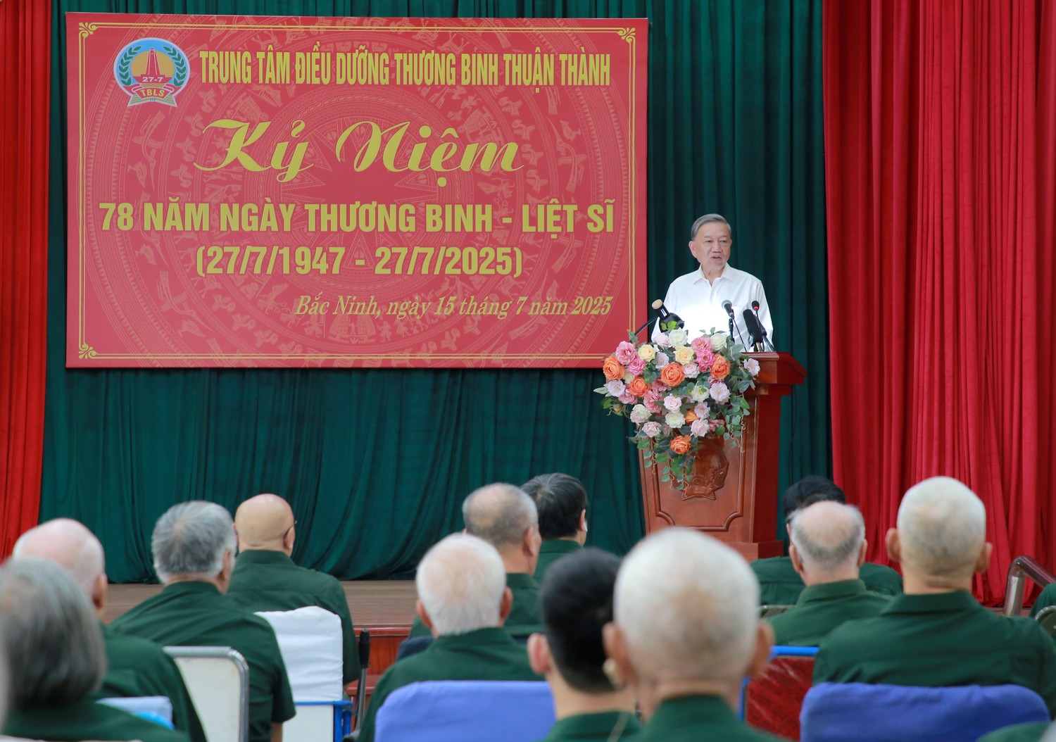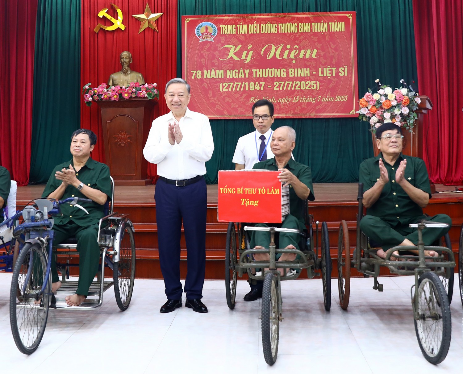 Tổng Bí thư Tô Lâm thăm, tặng quà thương binh, bệnh binh tại Trung tâm điều dưỡng thương binh Thuận Thành, Bắc Ninh