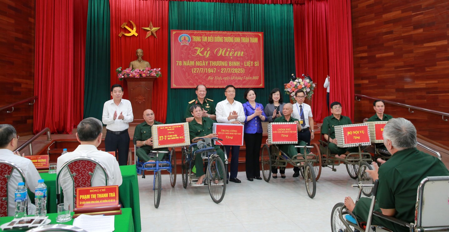 Các đồng chí Lãnh đạo Trung ương, tỉnh Bắc Ninh tặng quà các đồng chí thương binh, bệnh binh tại Trung tâm điều dưỡng thương binh Thuận Thành, Bắc Ninh.