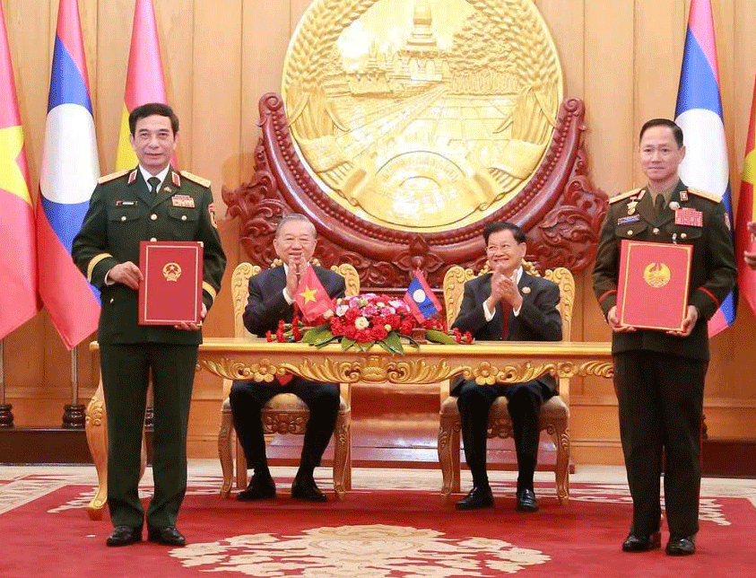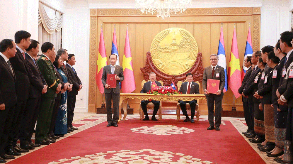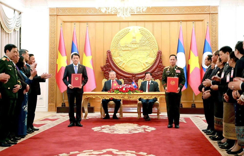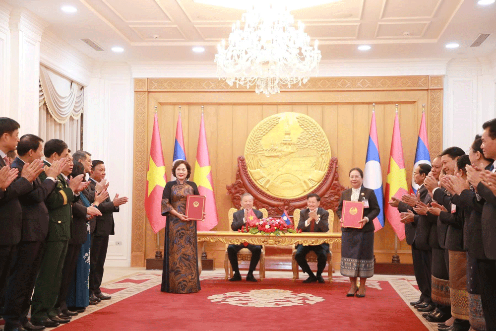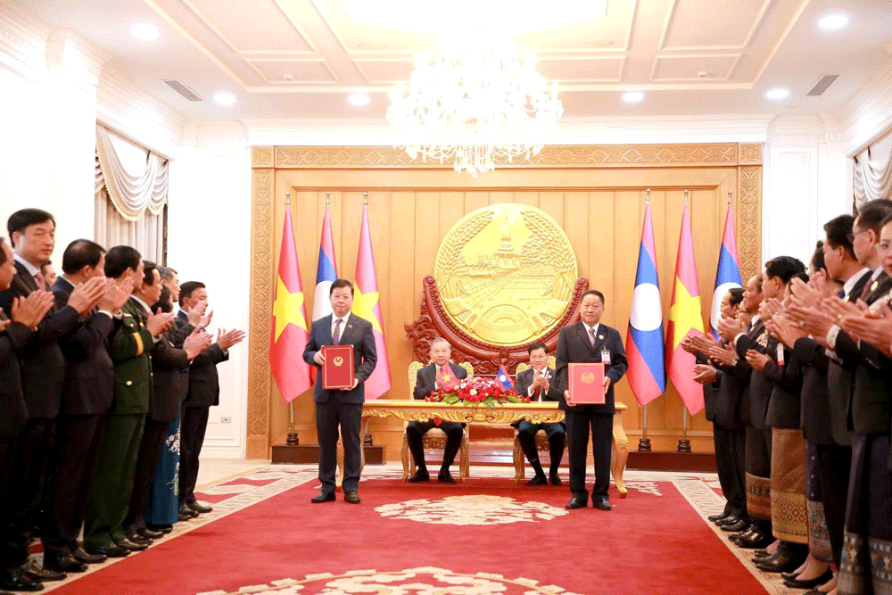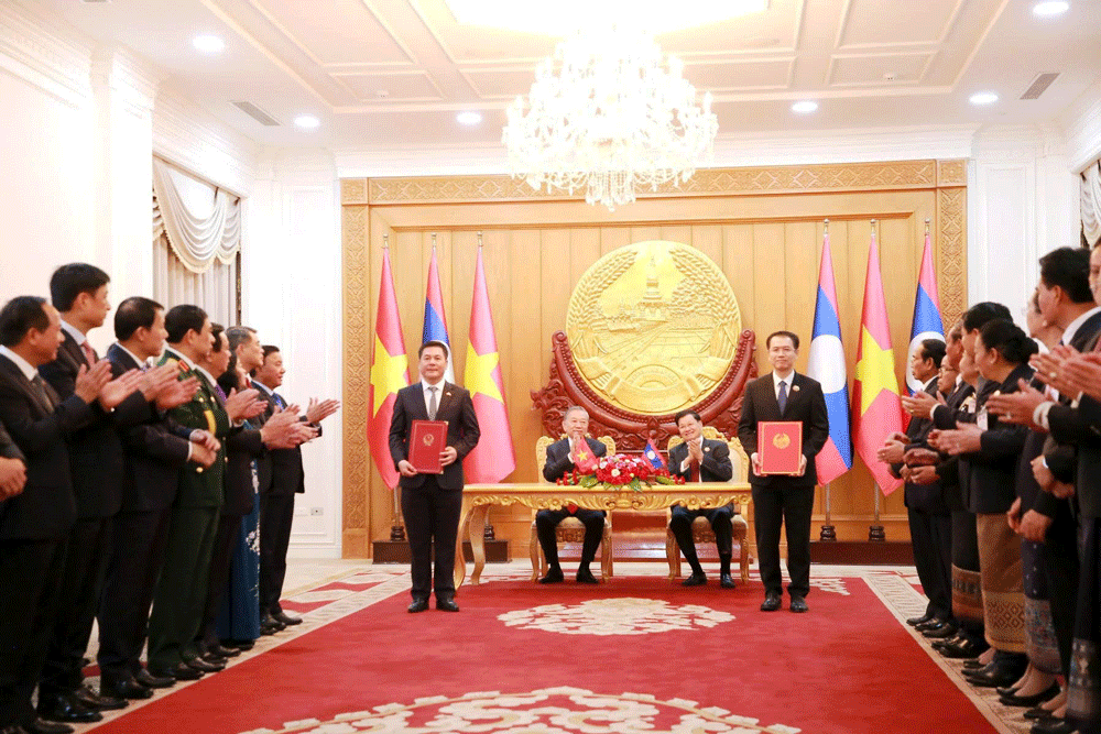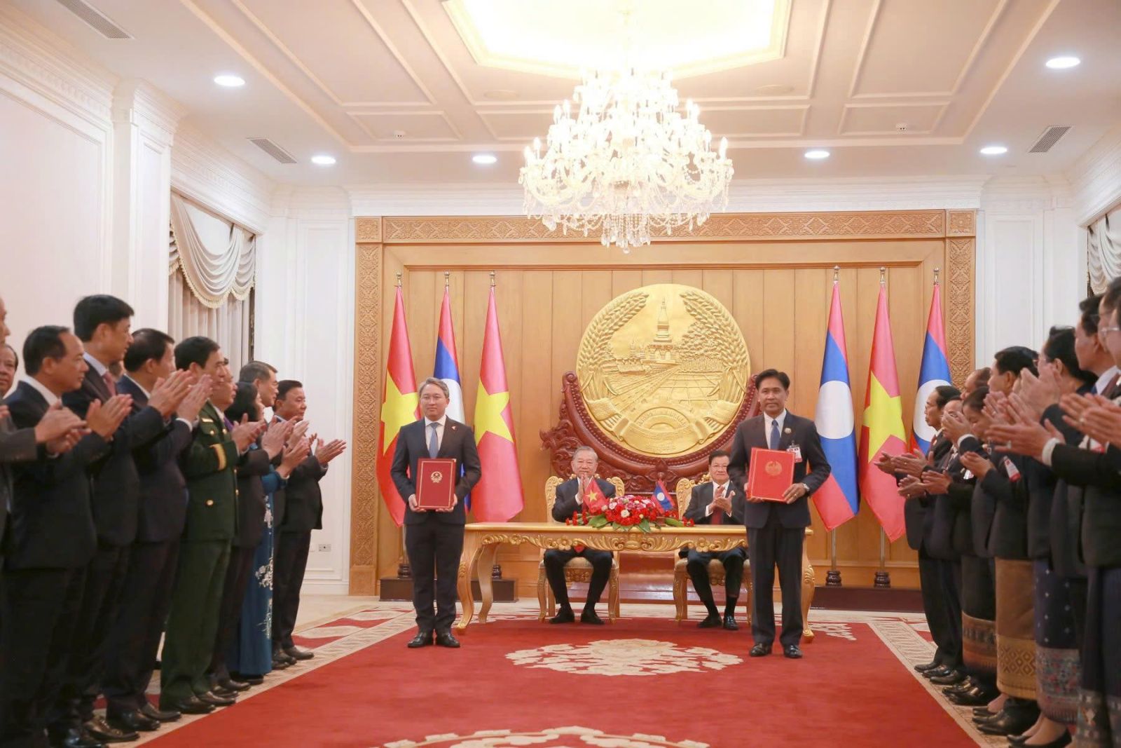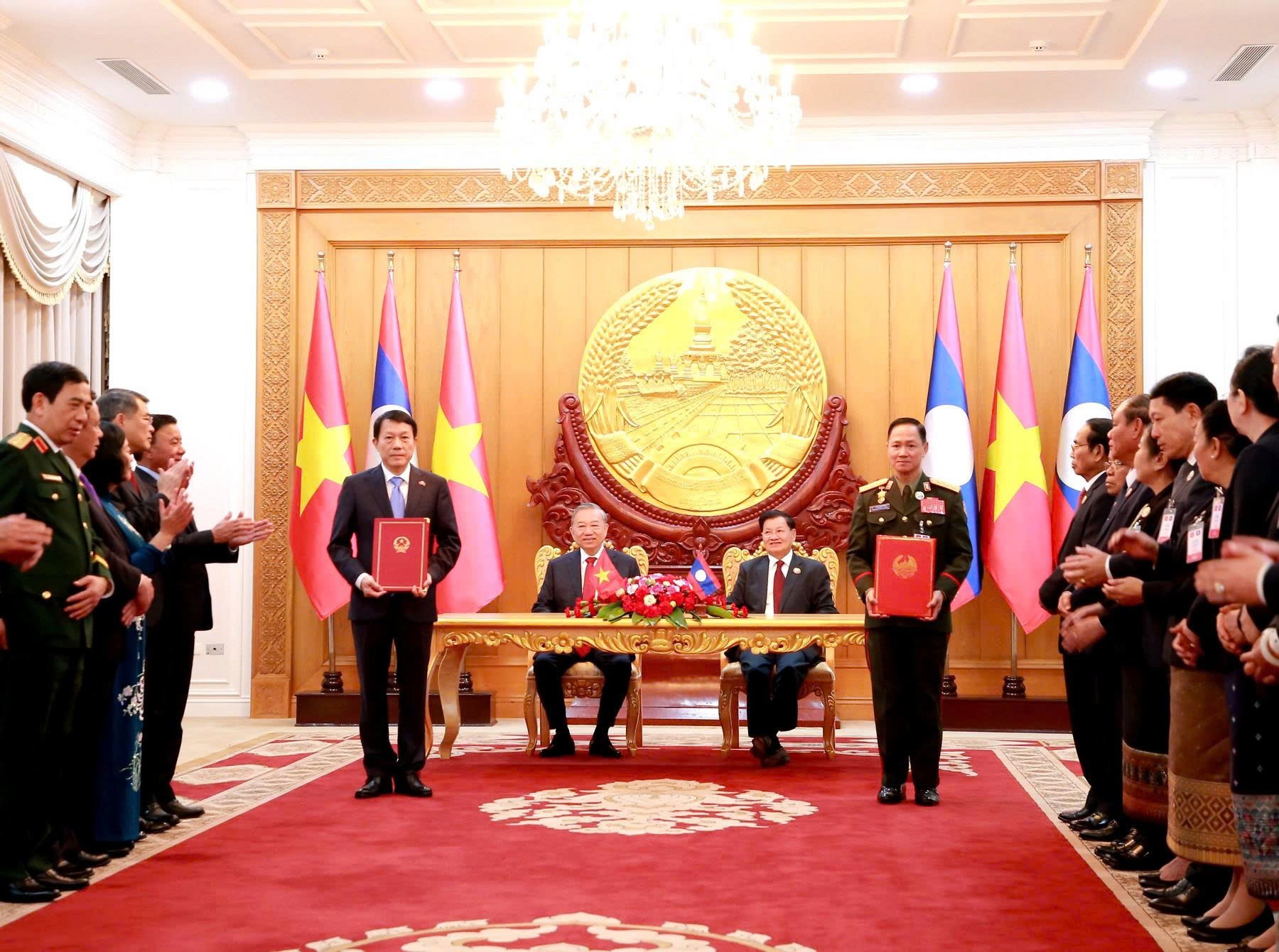 Trong khuôn khổ chuyến thăm cấp Nhà nước Cộng hòa Dân chủ Nhân dân Lào và dự Lễ kỷ niệm 50 năm Quốc khánh nước Cộng hòa Dân chủ Nhân dân Lào, trưa 1/12, ngay sau hội đàm, Tổng Bí thư Tô Lâm và Tổng Bí thư, Chủ tịch nước Lào Thongloun Sisoulith cùng Đoàn đại biểu cấp cao hai nước chứng kiến Lễ trao các văn kiện hợp tác.