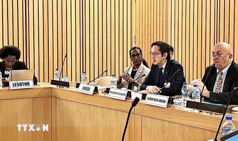 Đại sứ Đỗ Hùng Việt chủ trì Hội nghị tham vấn dành cho các nước thành viên khu vực châu Phi của Hiệp ước Không phổ biến vũ khí hạt nhân (NPT) tháng 11/2025. (Ảnh: TTXVN phát)