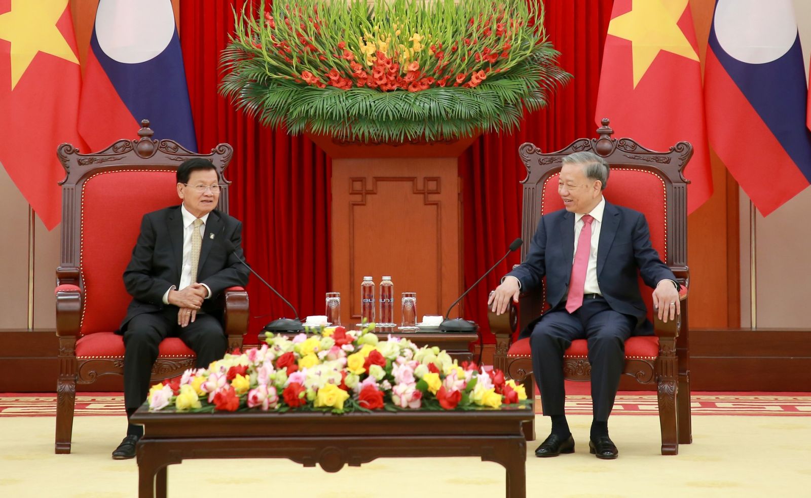 Tổng Bí thư Tô Lâm và Tổng Bí thư, Chủ tịch nước Lào Thongloun Sisoulith đánh giá cao quan hệ hợp tác giữa hai nước tiếp tục phát triển thực chất và toàn diện. Bên cạnh tăng cường hợp tác chính trị, quốc phòng, an ninh, hai bên nhất trí tiếp tục thúc đẩy mạnh mẽ tạo đột phá trong hợp tác kinh tế để tương xứng với tầm mức của quan hệ chính trị tốt đẹp; thống nhất thúc đẩy tăng trưởng thương mại song phương, mở rộng kết nối hạ tầng, triển khai hiệu quả các dự án hợp tác chiến lược, qua đó tạo động lực mới cho giai đoạn hợp tác phát triển hiệu quả và bền vững lâu dài, vì lợi ích chung của hai nước.