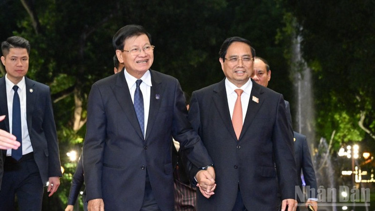 Tổng Bí thư, Chủ tịch nước Lào nhất trí với những đánh giá, chia sẻ của Thủ tướng Phạm Minh Chính về kết quả tốt đẹp đạt được trong hợp tác song phương trong thời gian qua, có nhiều điểm sáng, trong đó có nhiều dự án quan trọng được hoàn thành và sẽ hoàn thành trong năm 2025 theo kế hoạch; chân thành cảm ơn sự giúp đỡ chí tình, chí nghĩa và sự hỗ trợ vô tư, trong sáng của Việt Nam dành cho Lào trong những năm qua.
