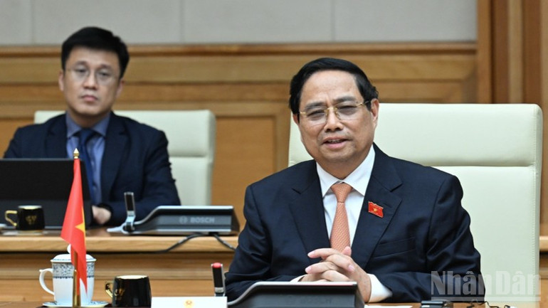 Trao đổi về quan hệ hợp tác song phương, Thủ tướng Phạm Minh Chính bày tỏ vui mừng nhận thấy quan hệ hữu nghị vĩ đại, đoàn kết đặc biệt và hợp tác toàn diện Việt Nam-Lào tiếp tục phát triển tốt đẹp trong thời gian qua.