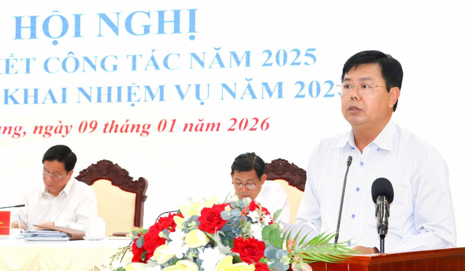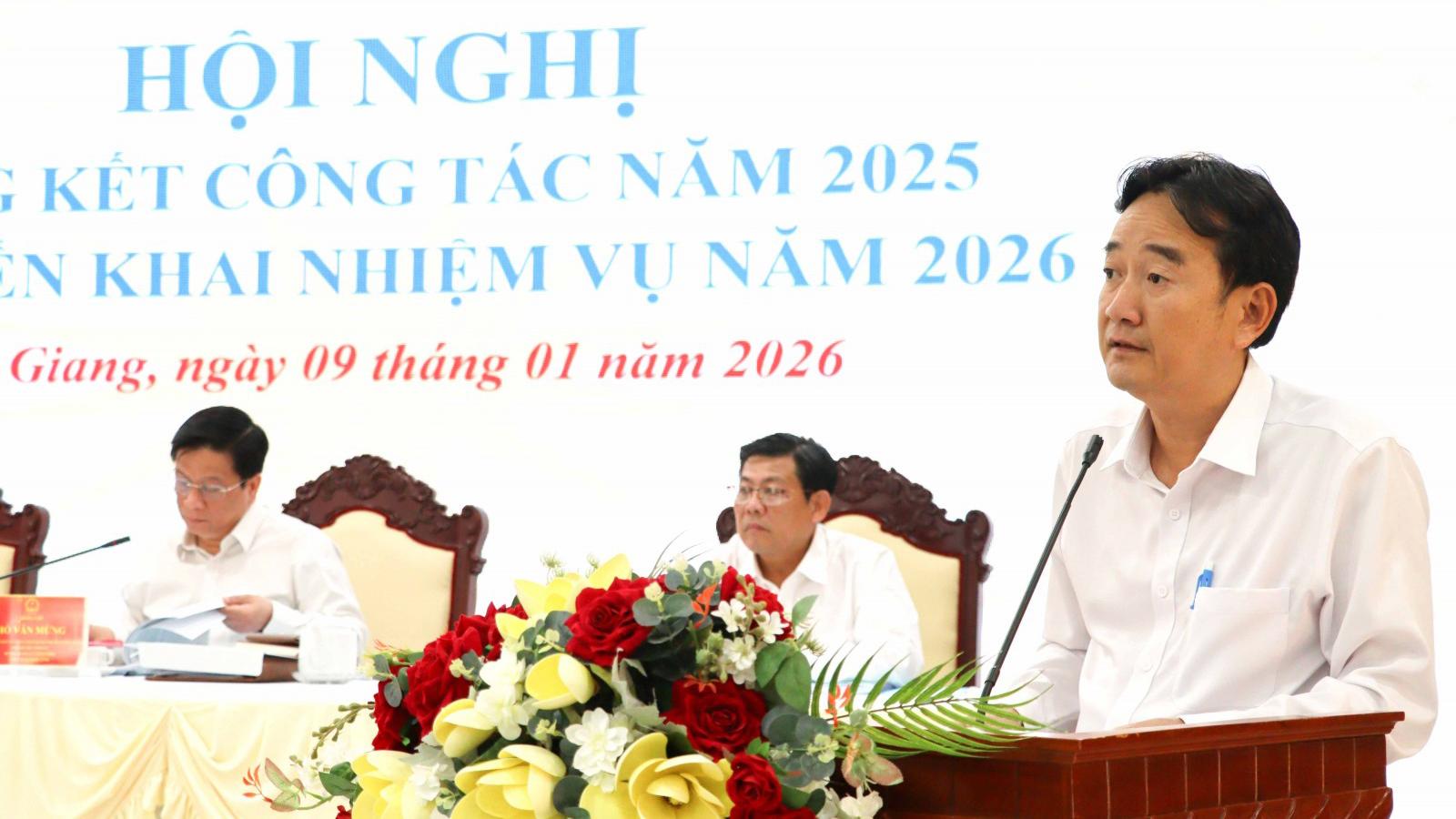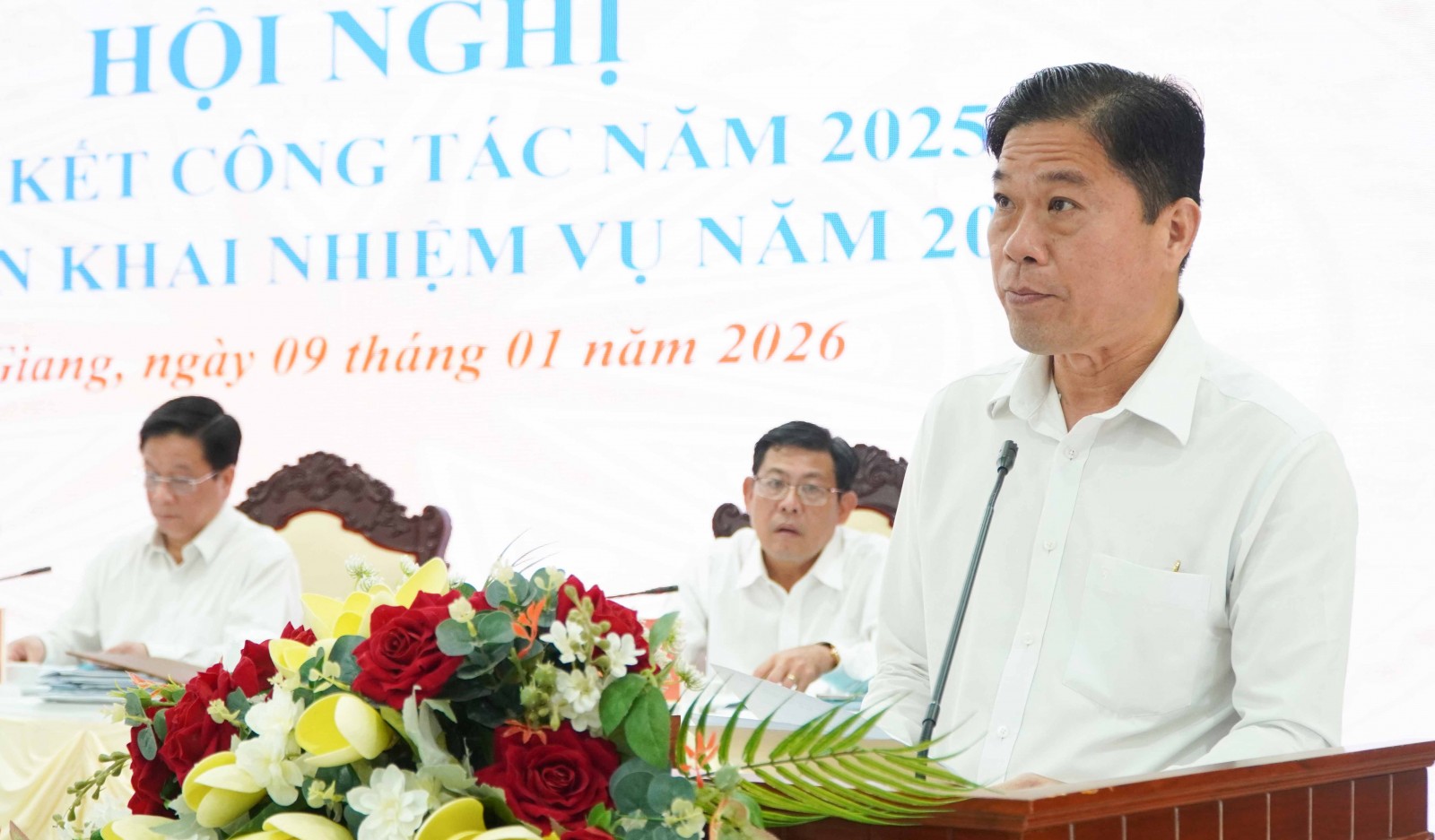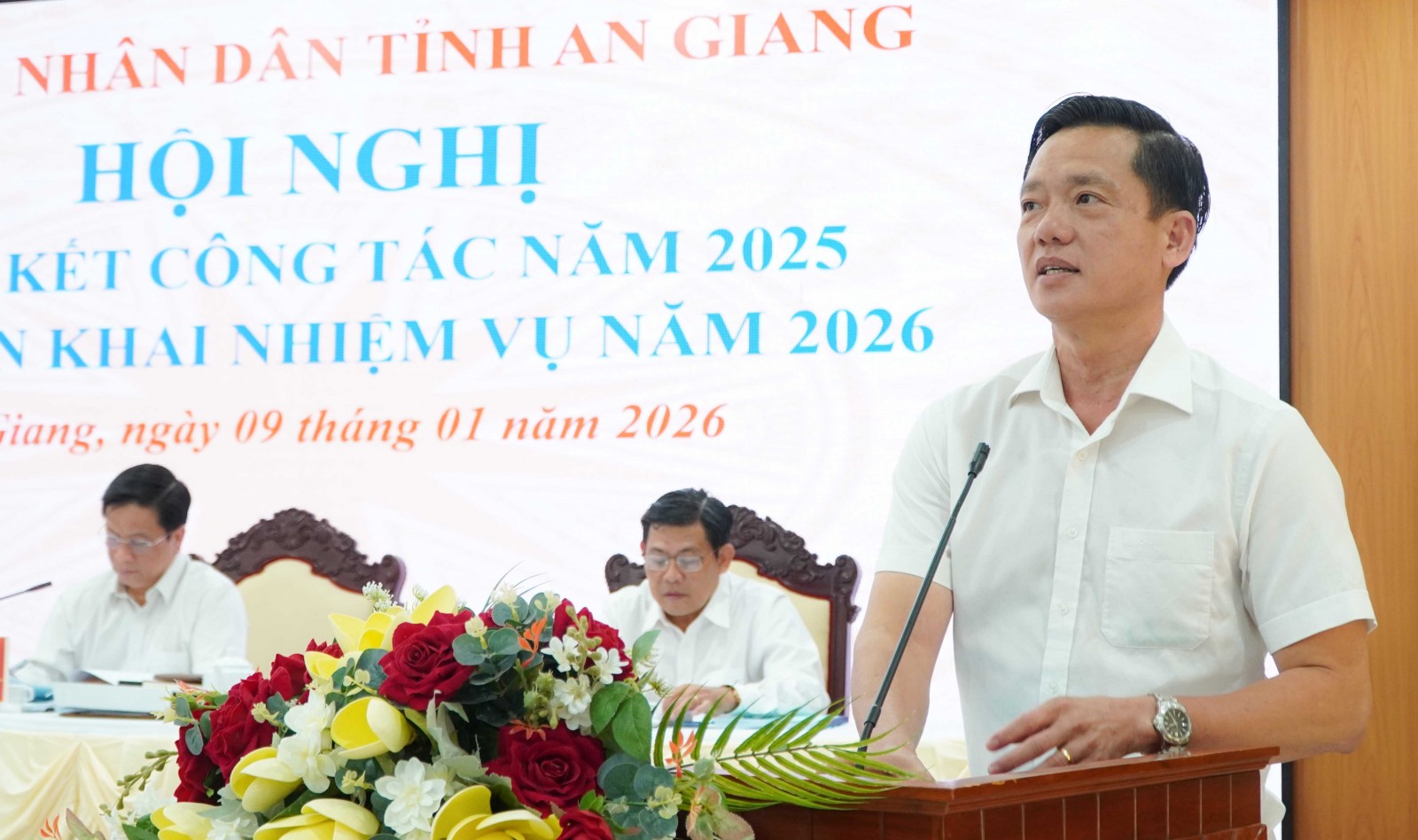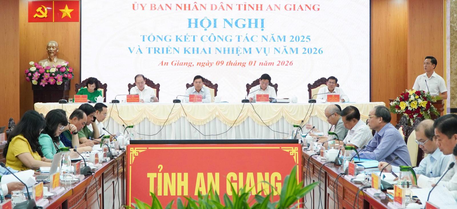 - Chiều 9/1, UBND tỉnh An Giang tổ chức Hội nghị tổng kết công tác năm 2025, triển khai giao chỉ tiêu, nhiệm vụ công tác năm 2026 bằng hình thức trực tiếp kết hợp trực tuyến. Ủy viên Ban Chấp hành Trung ương Đảng, Bí thư Tỉnh ủy An Giang Nguyễn Tiến Hải dự và chỉ đạo hội nghị. Ủy viên dự khuyết Ban Chấp hành Trung ương Đảng, Phó Bí thư Tỉnh ủy, Chủ tịch UBND tỉnh An Giang Hồ Văn Mừng và các Phó Chủ tịch UBND tỉnh chủ trì hội nghị.