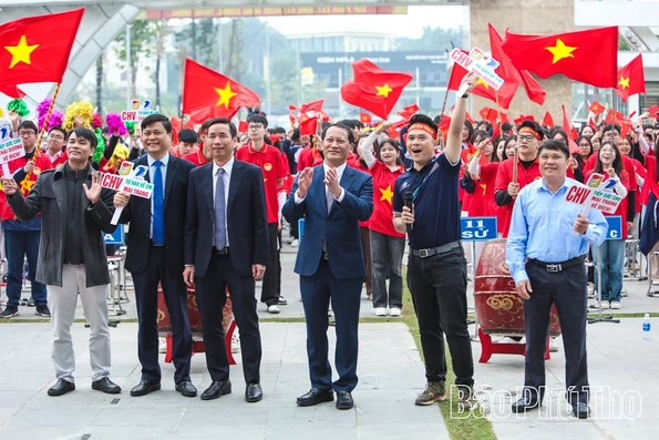 Màn tiếp sức sôi động tại điểm cầu Trường THPT Việt Trì.