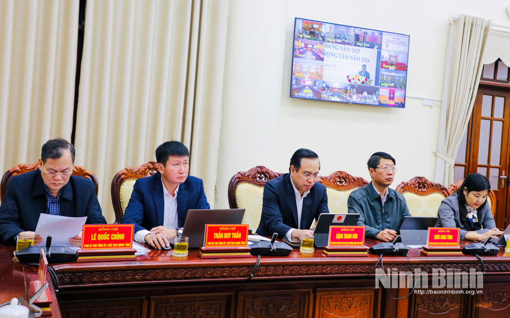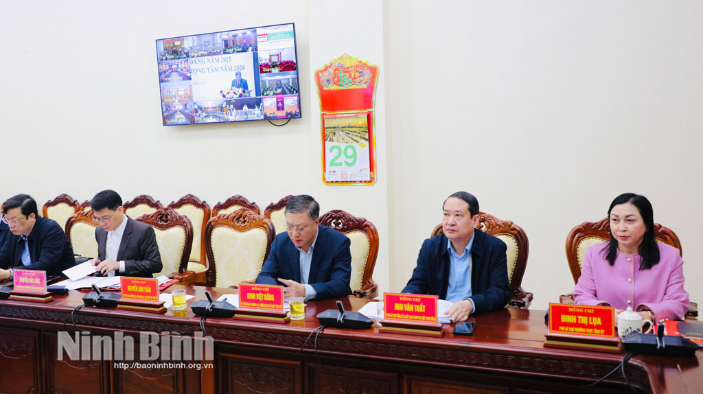 Dự hội nghị tại điểm cầu trụ sở Tỉnh ủy Ninh Bình có đồng chí Đặng Xuân Phong, Ủy viên Trung ương Đảng, Bí thư Tỉnh ủy, Trưởng Đoàn ĐBQH tỉnh, Trưởng Ban Chỉ đạo cấp tỉnh về phát triển khoa học, công nghệ, đổi mới sáng tạo và chuyển đổi số (Ban chỉ đạo); các đồng chí: Đinh Thị Lụa, Phó Bí thư Thường trực Tỉnh ủy, Phó Trưởng Ban Thường trực Ban Chỉ đạo; Lê Quốc Chỉnh, Phó Bí thư Tỉnh ủy, Chủ tịch HĐND tỉnh, Phó Trưởng Ban Chỉ đạo; Trần Huy Tuấn, Phó Bí thư Tỉnh ủy, Chủ tịch UBND tỉnh, Phó Trưởng Ban Chỉ đạo; Mai Văn Tuất, Phó Bí thư Tỉnh ủy, Chủ tịch Ủy ban MTTQ Việt Nam tỉnh, Phó Trưởng Ban Chỉ đạo; các thành viên Ban Chỉ đạo, Tổ giúp việc Ban Chỉ đạo cấp tỉnh.